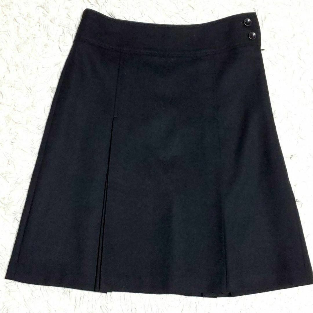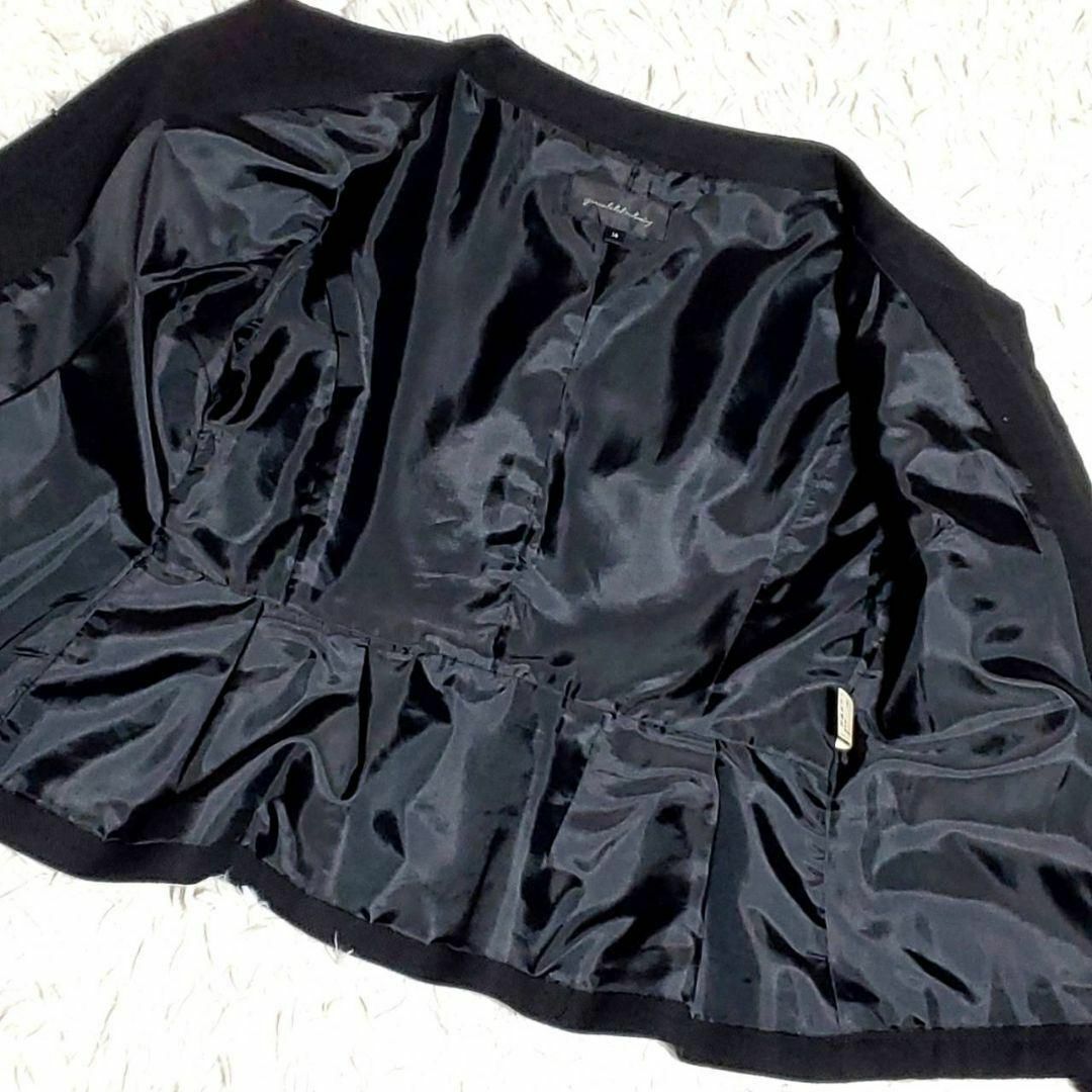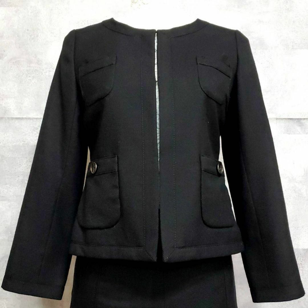 美品 M グリーンレーベルリラクシング ウール100 スカート ノーカラー ジャケット セットアップ 黒 green label relaxing 上下 ジャケット 羊毛 ブラック ボックスプリーツ ひざ丈 カラーレス ユナイテッドアローズ United Arrows