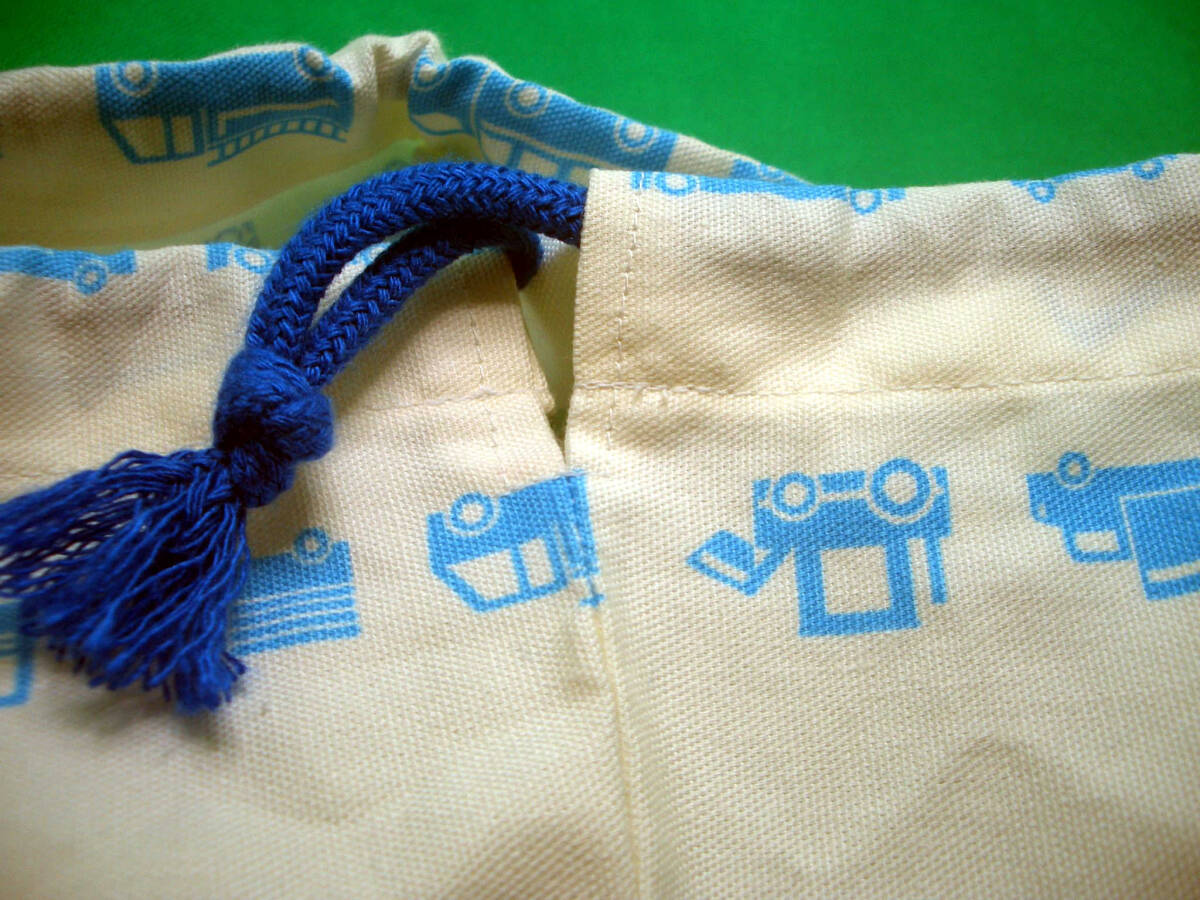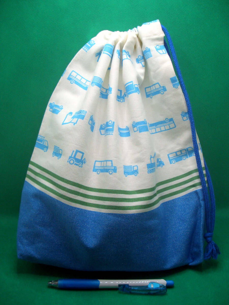 1,000円以上落札で送料無料 即決  体操服袋 片手絞り はたらくくるま 濃水色 ハンドメイド 男の子 手作り