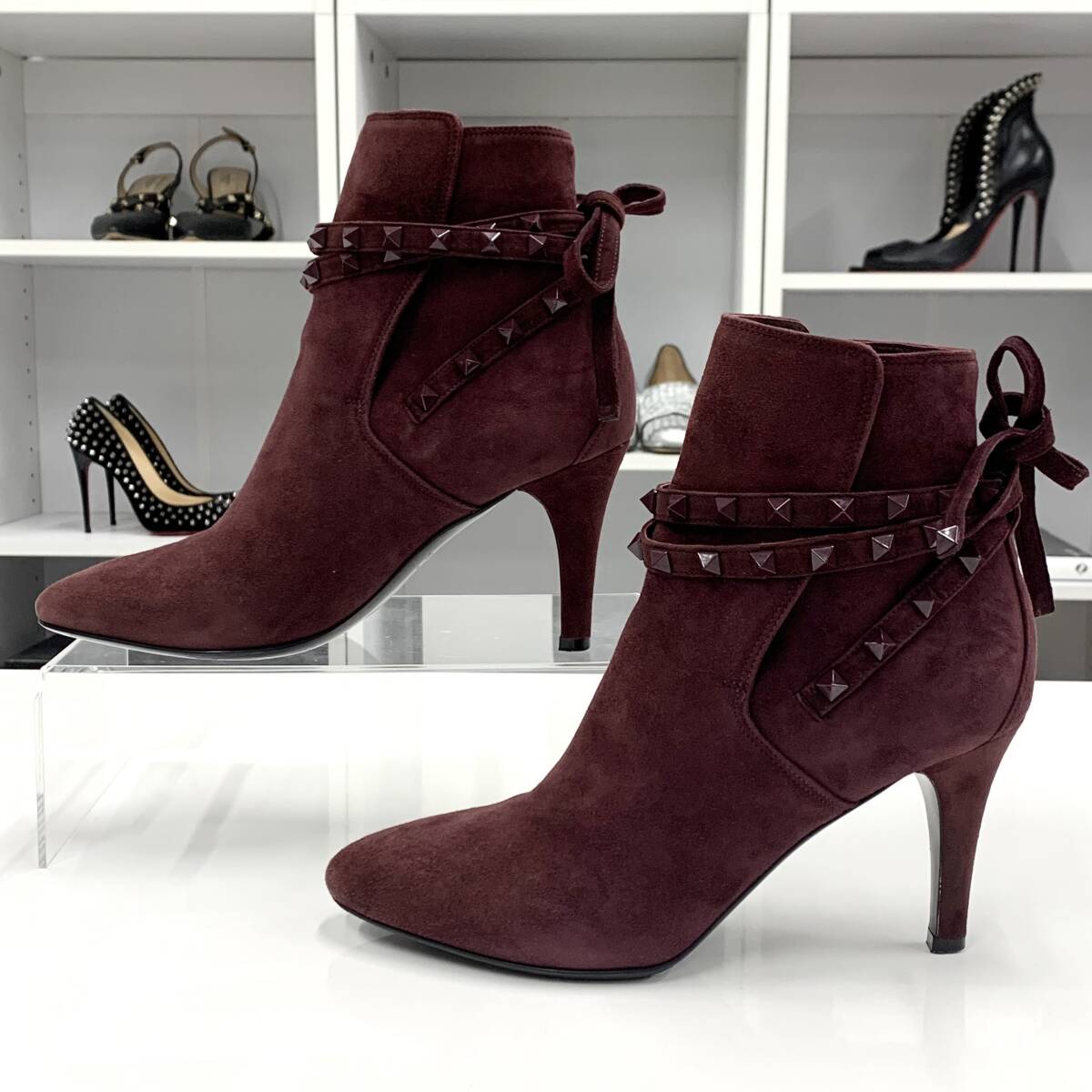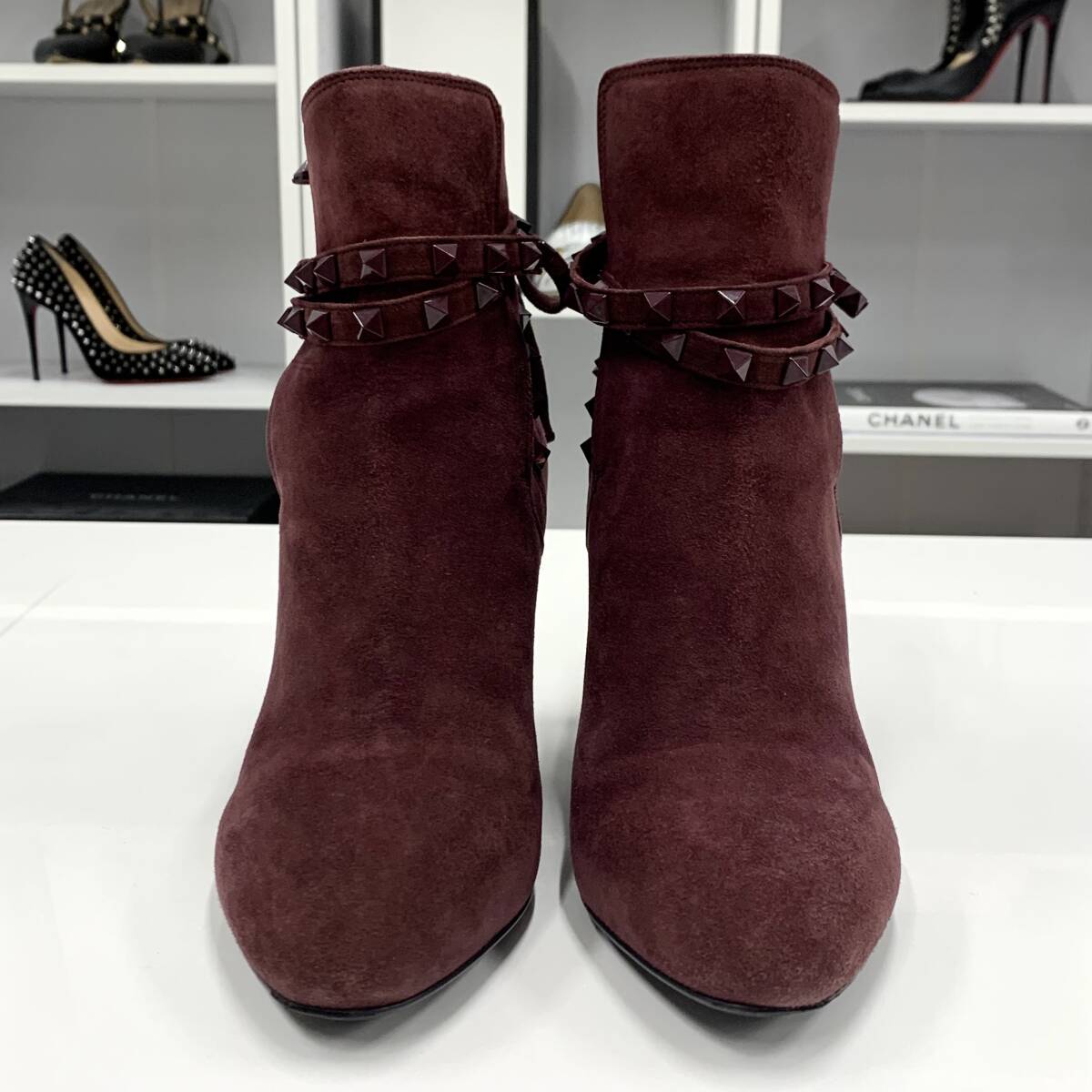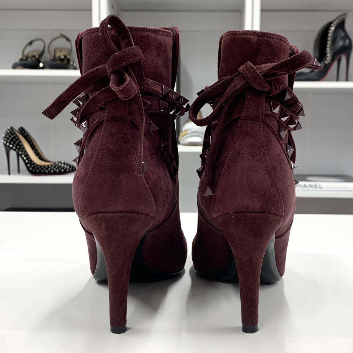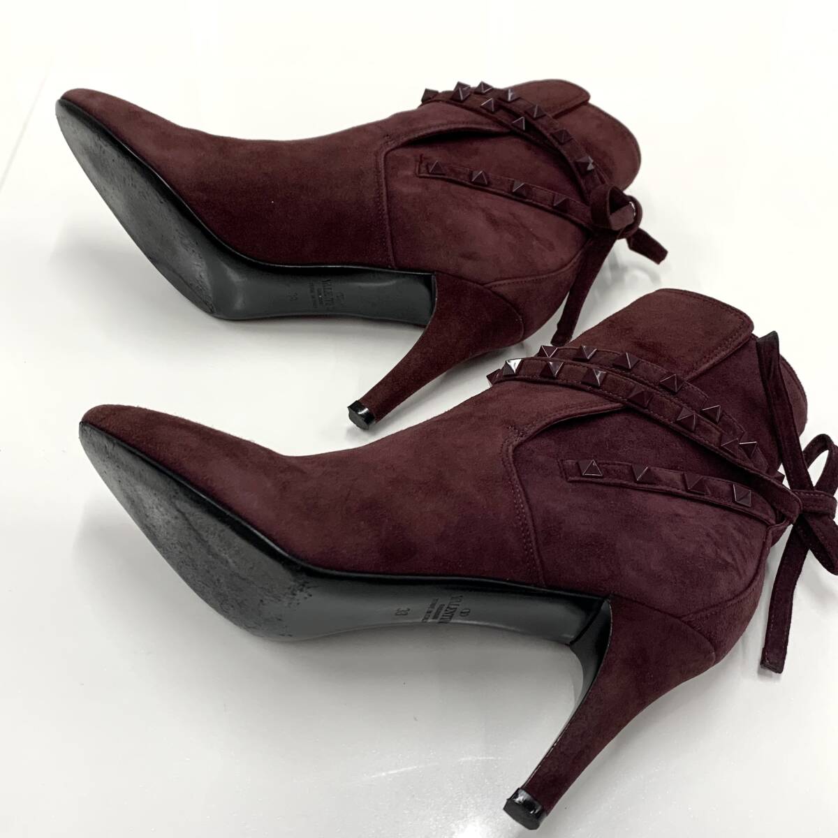 9210 ヴァレンティノ ロックスタッズ スエード ショートブーツ ブラウン系