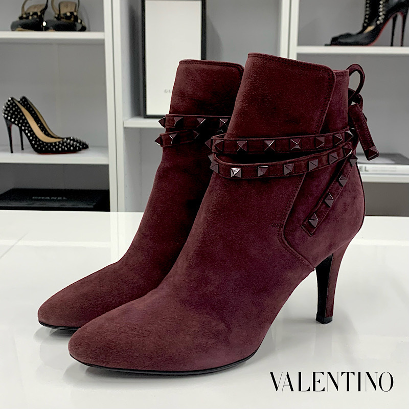 ヴァレンティノ ロックスタッズ スエード ショートブーツ ブラウン系