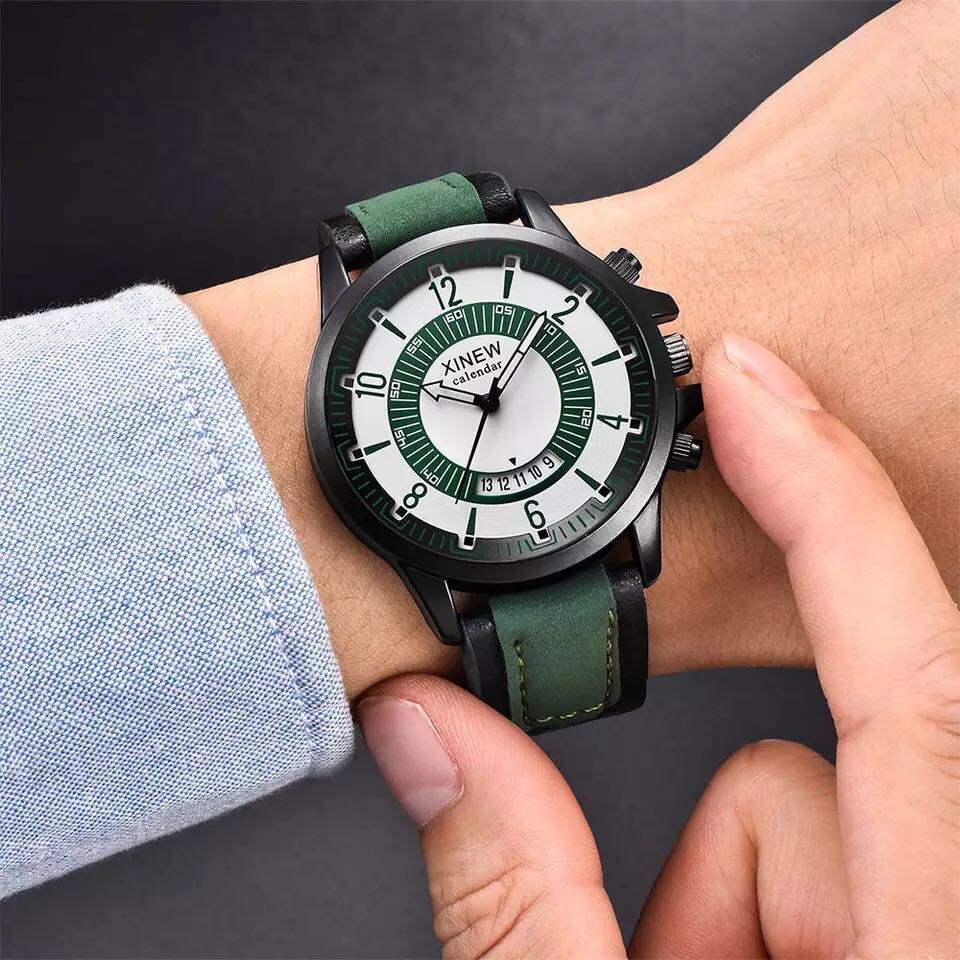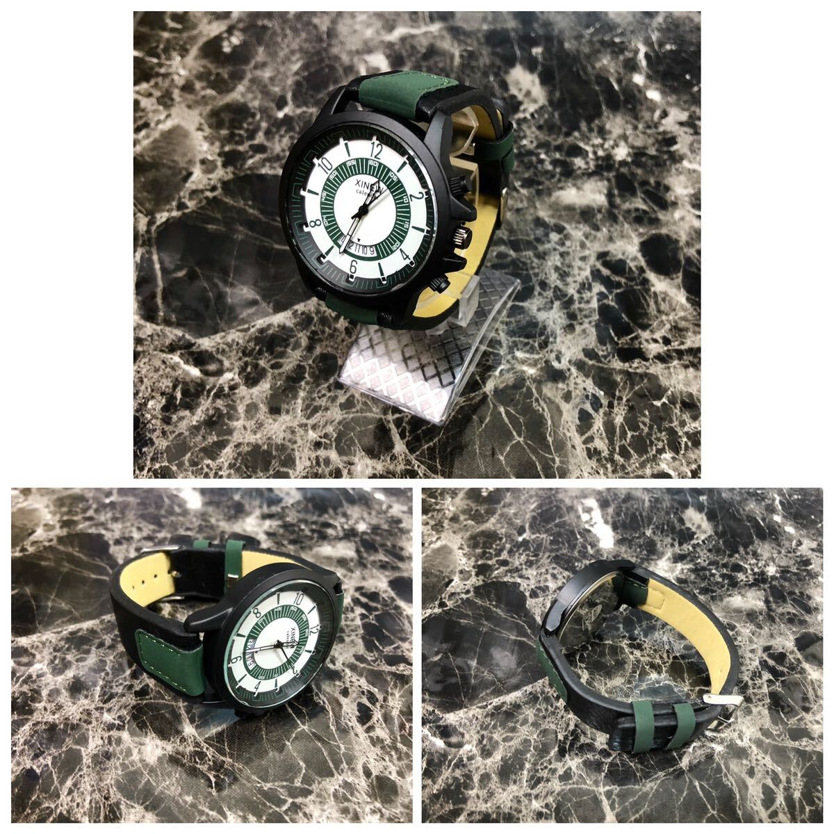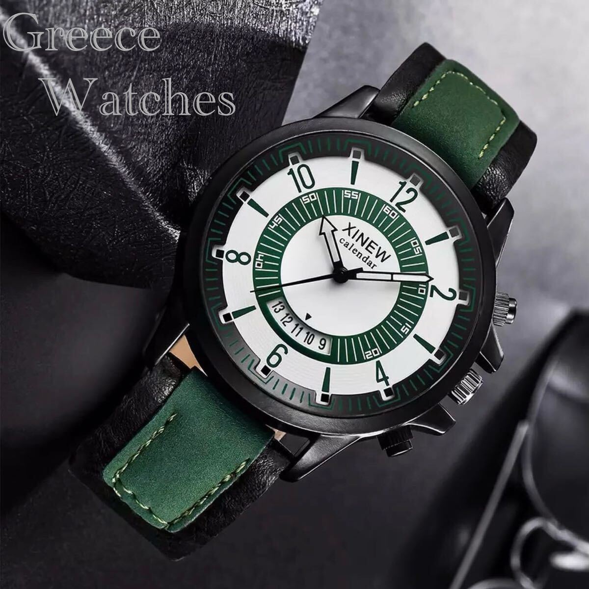 腕時計 ツートン アナログ メンズ クォーツ 時計 高品質 レザー ファッション時計 オシャレ ウォッチ ブラックグリーン