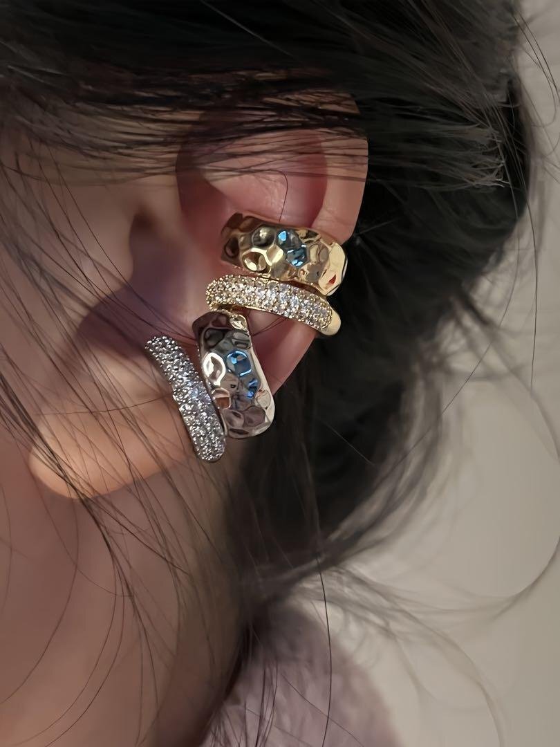 新品 金属イヤーカフ ラインストーンイヤーカフ レディースピアス ラインストーンイヤリング 片耳用