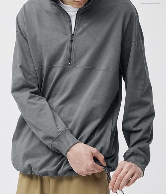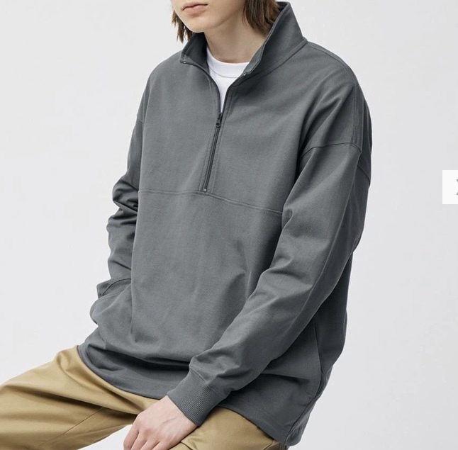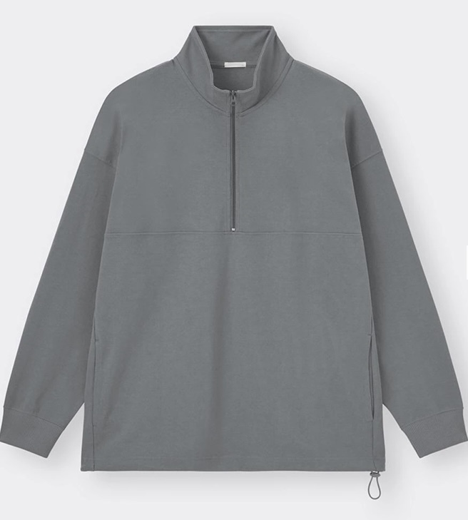 GU(ジーユー)のクールなヘビーウェイトオーバーサイズハーフジッププルオーバーです。