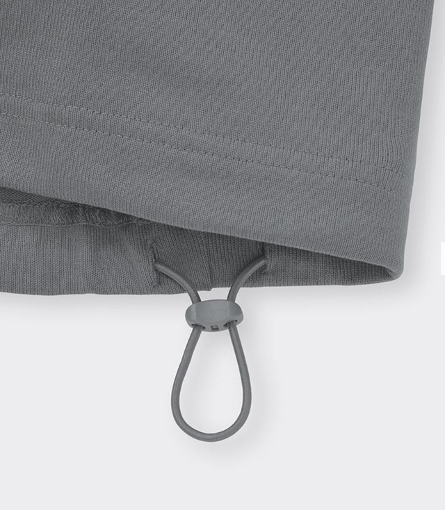 ドロップショルダーでリラックスしたサイズ感。裾を絞るとオシャレ。