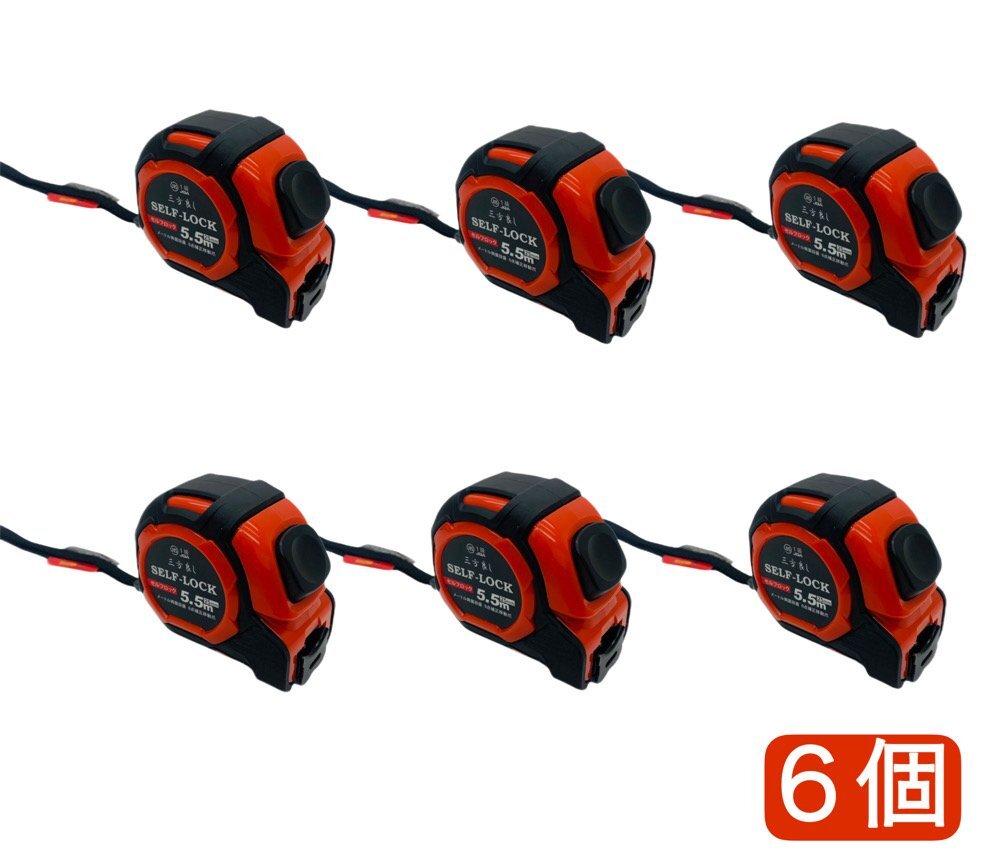 三方良し赤 6個 セルフロック メジャー 25mm 幅5.5m コンベックス セルフストップ 両面目盛 JIS1級規格 0点補正移動爪付 メジャー 巻尺