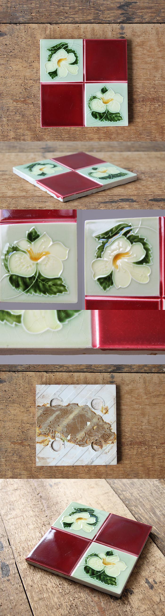 イギリスから直輸入した古いアン ティークタイル。花柄の美しいデザインタイルです。