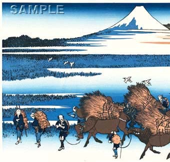 真作保証 東京都伝統工芸品 額装  葛飾北斎  木版画  冨嶽三十六景  駿州大野新田  初版1831-33年頃      やはり北斎は凄い!!