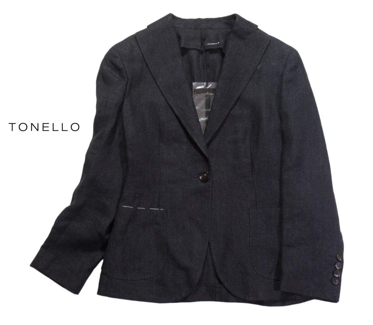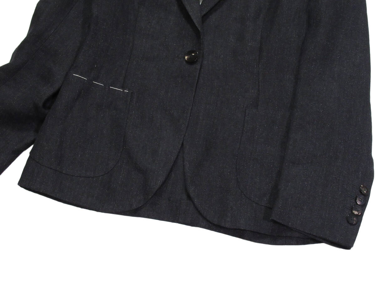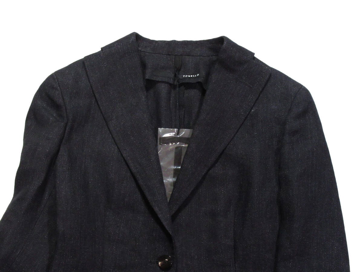 トネッロ ジャケット サイズ表記:40 お色:ブラック系 素材:麻70 ヘンプ30% 平置き実寸で 肩幅37 身幅42 着丈55 袖丈52㎝位です。 1つボタン、ノーベント。 *右ポケットの白い部分は仕付け糸です。 |
