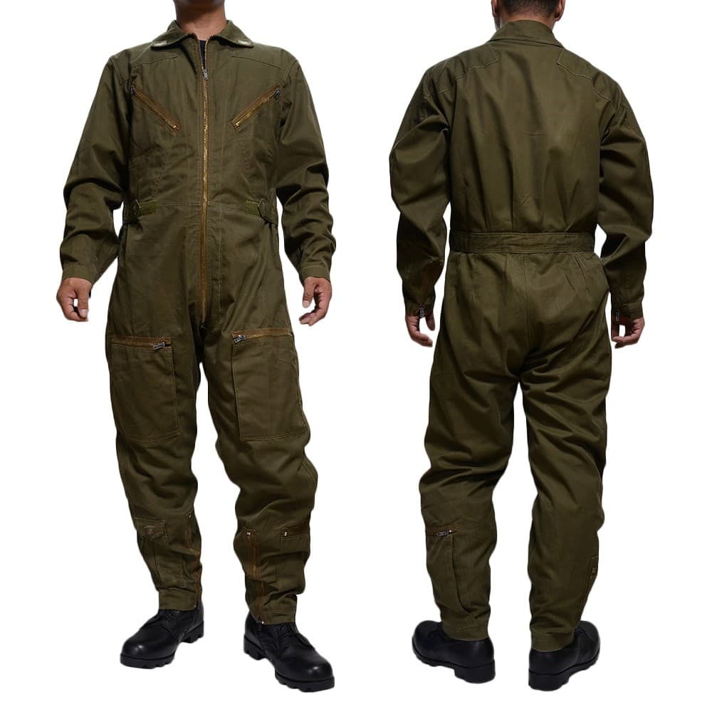 上着とズボンが縫い合わさったつなぎ型のユニフォームで、軍用航空機のパイロットが着用していた物になります。機能的な作りとなっており、胸部から脚部にかけて取り付けられた複数のポケットには、取り出し易さに応じて適切な場所に物を入れておくことができます。