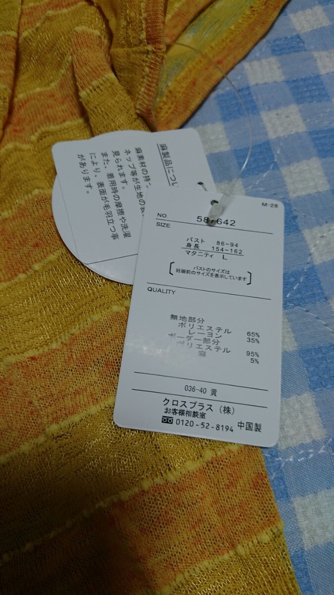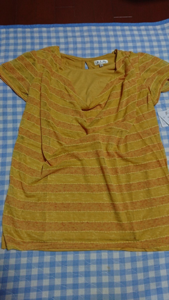 〇401☆未使用・保管品☆授乳服☆麻混 ドレープチュニック 黄色L①