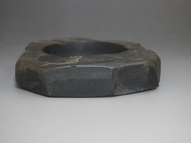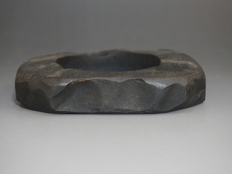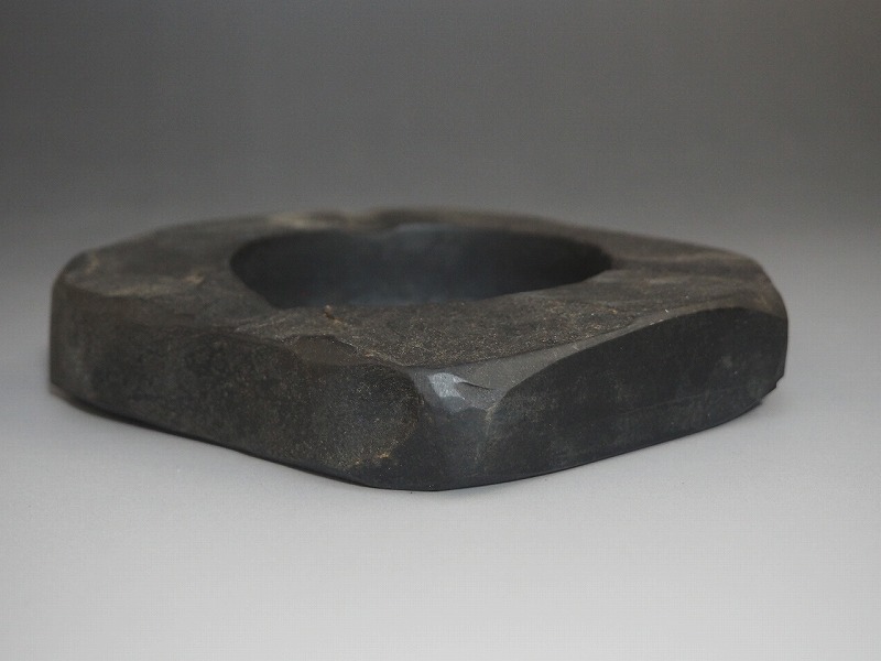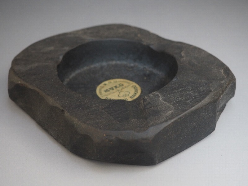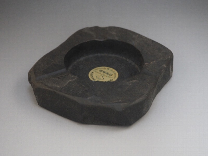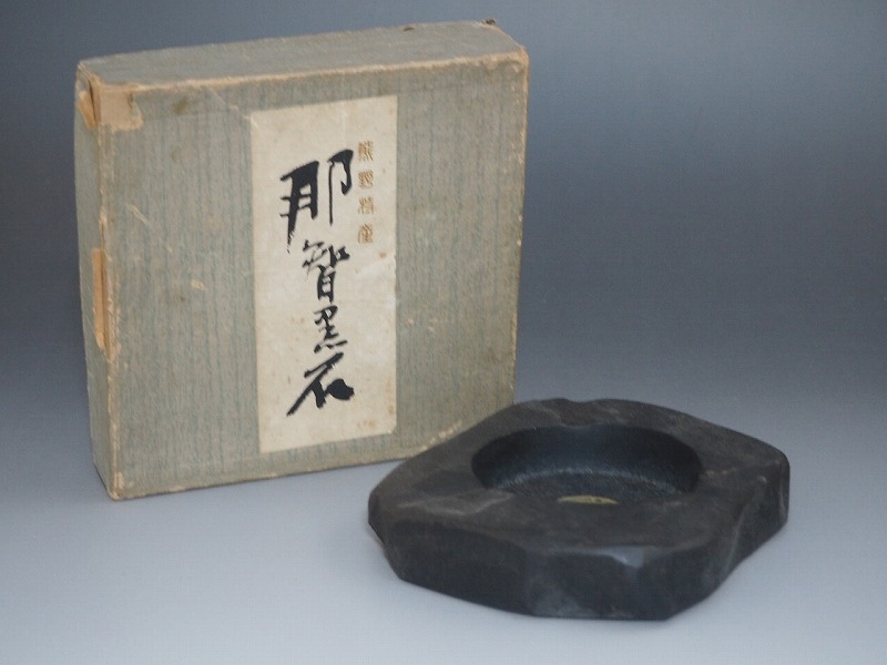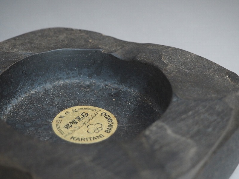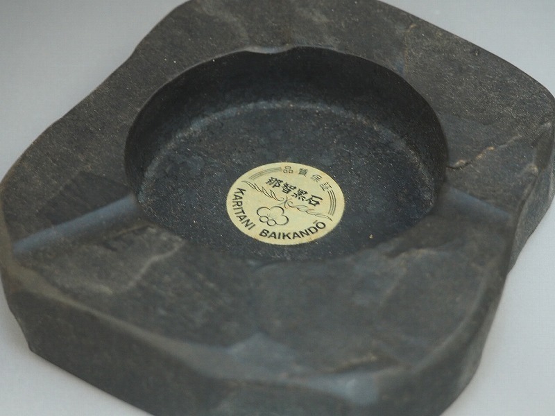 | A2550 熊野特産 那智黒石 KARITANI BAIKANDO 灰皿 化粧箱付 ☆ 幅12.5㎝ 那智黒 自然石 灰入 喫煙具 灰道具 インテリア 美品 良品 無傷 | ||