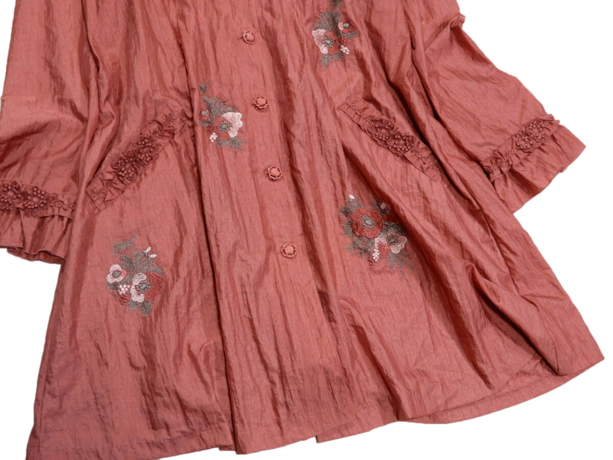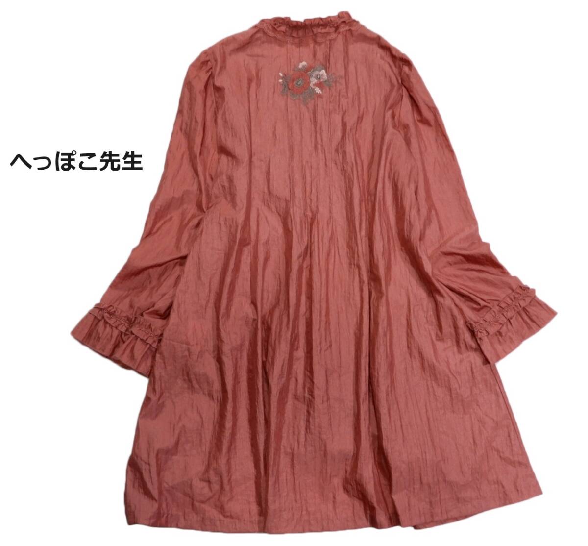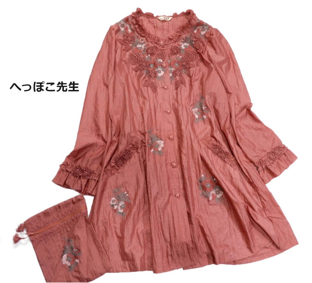未使用 へっぽこ先生 素敵☆皺加工 立体フラワーモチーフ 刺繍 コート ポーチ付き M~L