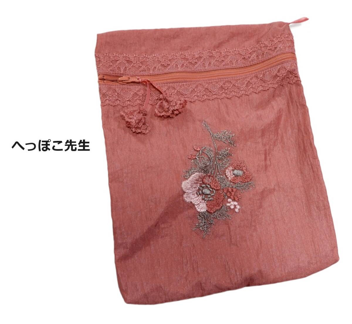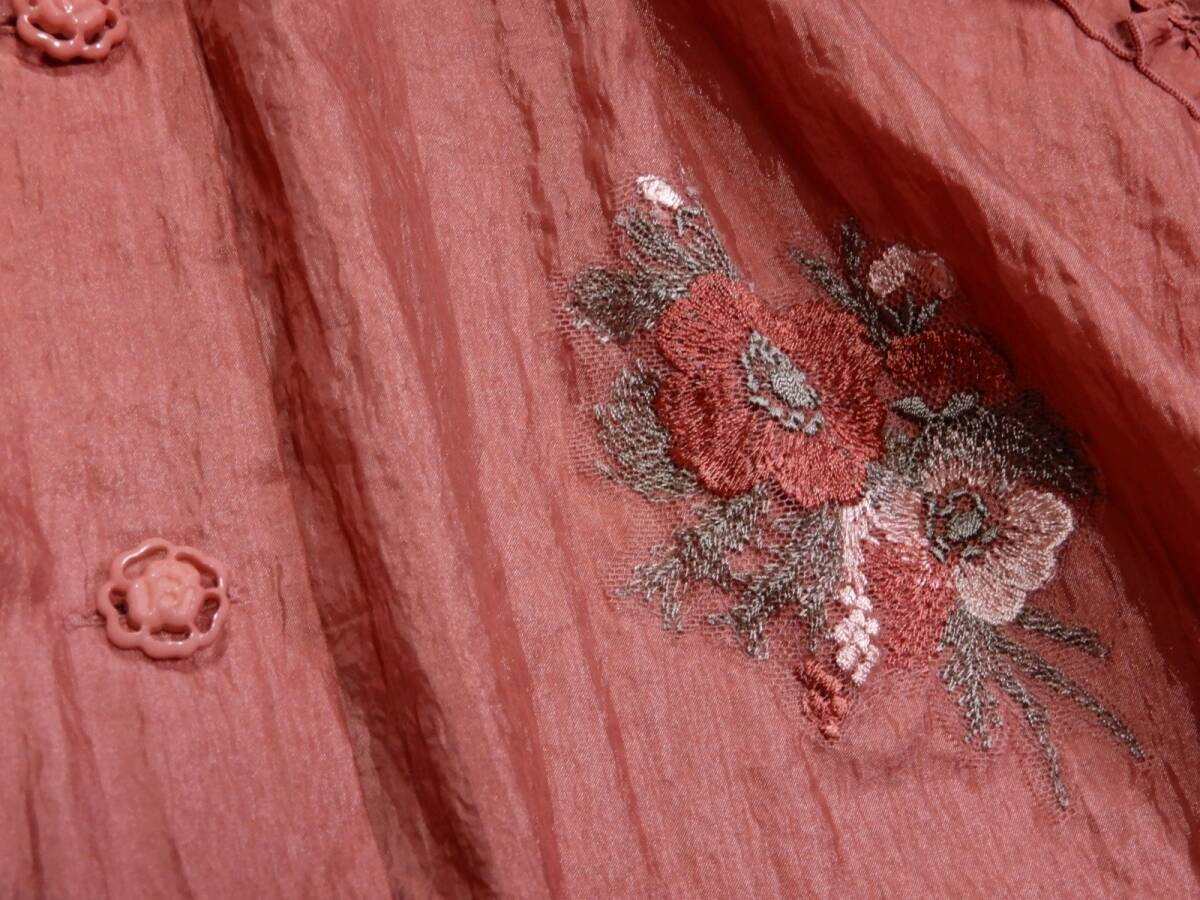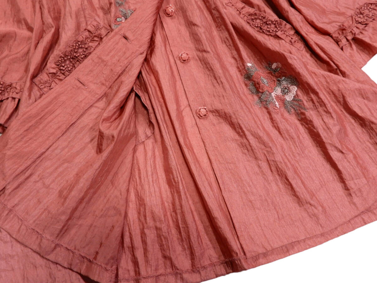 未使用 へっぽこ先生 素敵☆皺加工 立体フラワーモチーフ 刺繍 コート ポーチ付き M~L