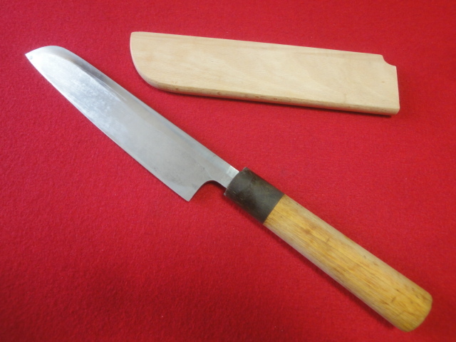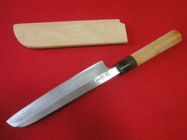 【佑成】関西型薄刃包丁 刃渡20.8㎝ 全長37.3㎝ 峰厚3.9mm ※鞘付 ※片刃 中古品 全国一律送料1100円
