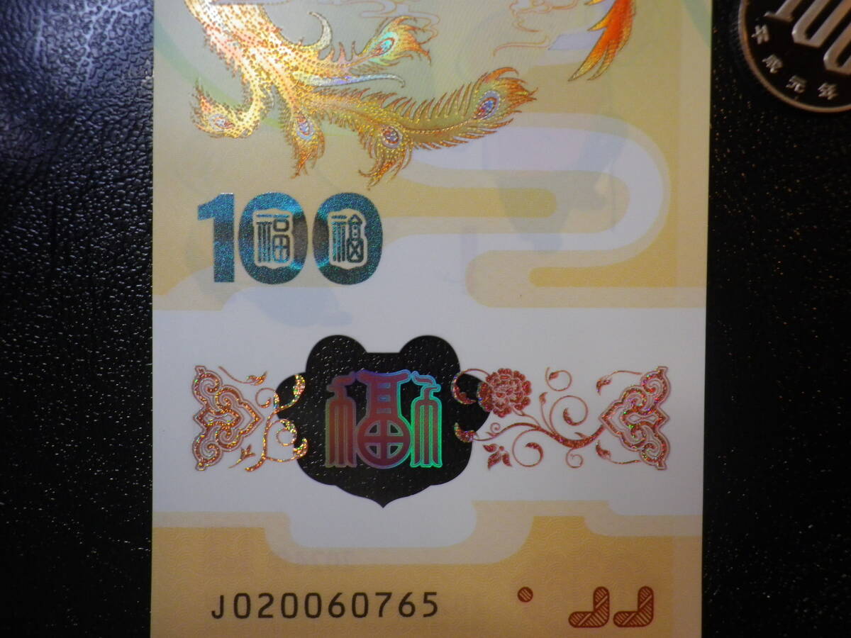 珍品!中国 ポリマー 記念 テストノート 2024年 フェ二ックス 100BAIFU 未使用