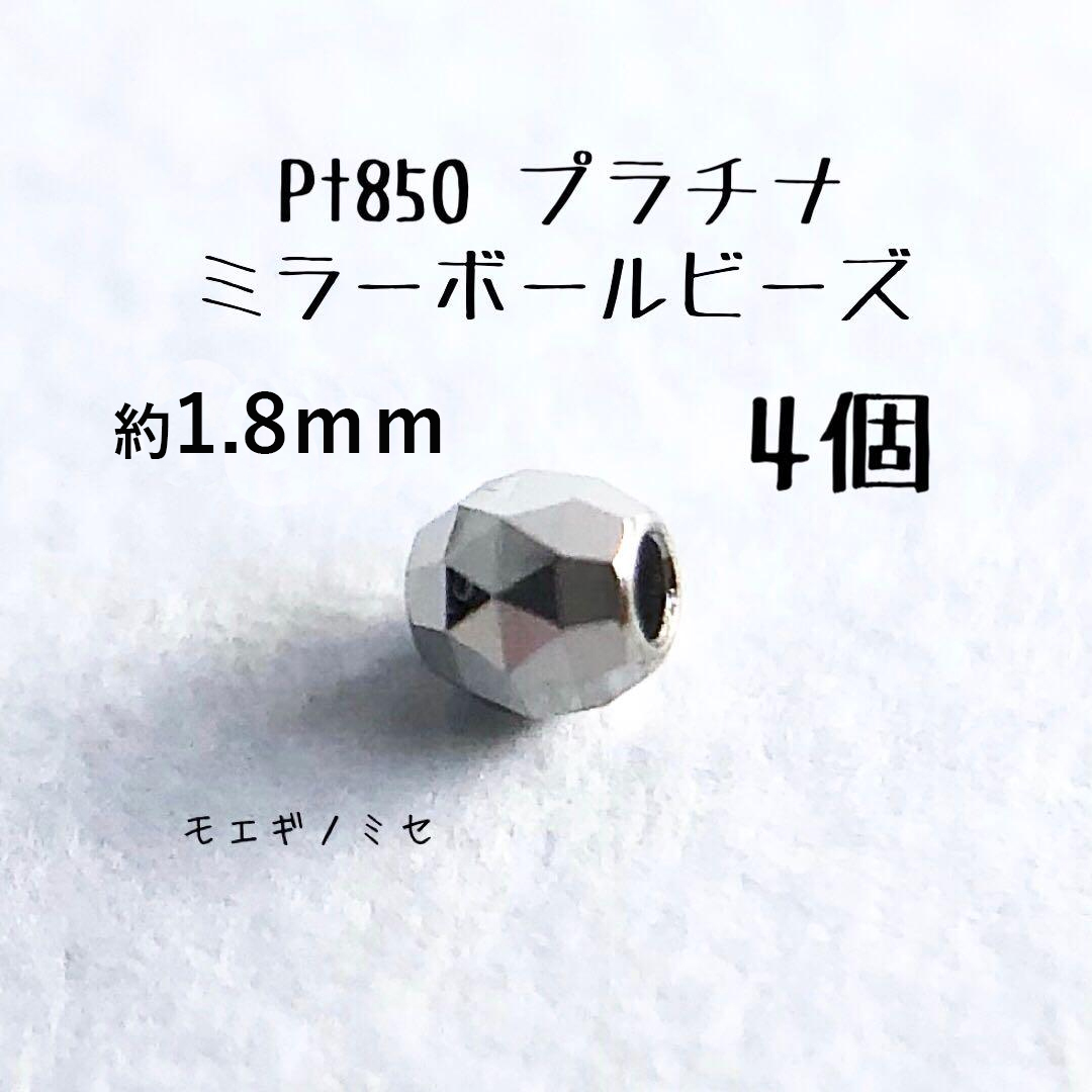 Pt850 プラチナ無垢 ビーズ 約1.8mm 4個セット 日本製 アクセサリーパーツ トライアングルカット ミラーボールカット ハンドメイド素