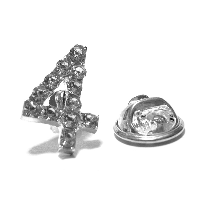 ラペルピン★ピンズ 4 シ Ⅳ four 数字 番号 ナンバー ラインストーン キラキラ pin-1452