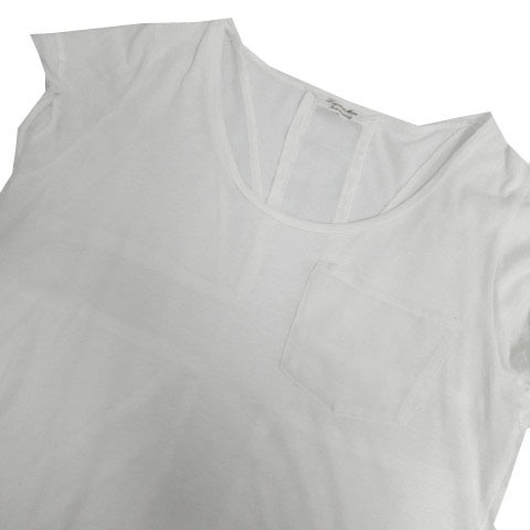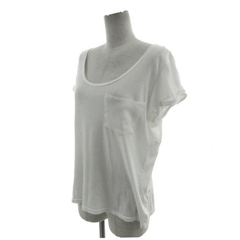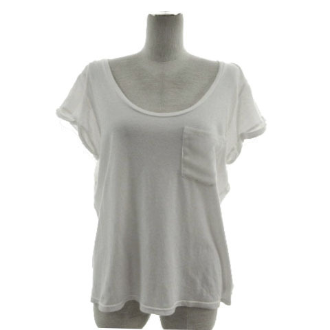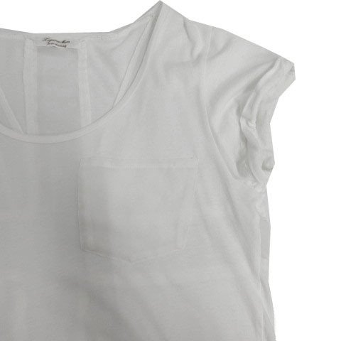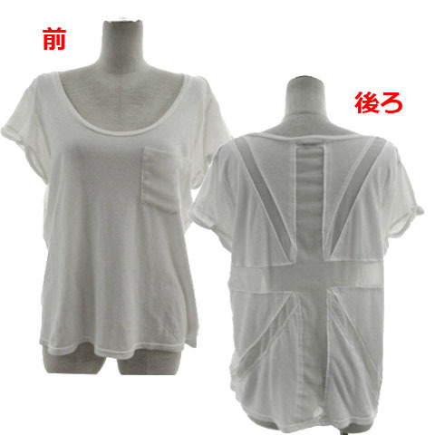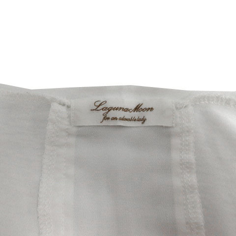 ラグナムーン LagunaMoon カットソー ボートネック 胸ポケ フレンチスリーブ バックユニオンジャック ホワイト 白 F レディース