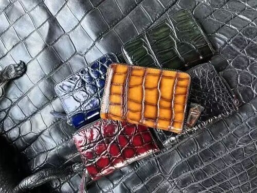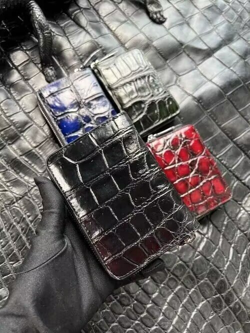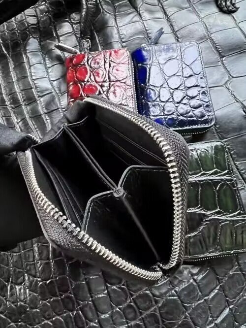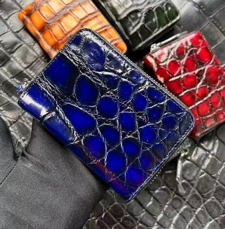 QB 青 小さい財布 腹革 人工養殖 アリゲーター◆手染 クロコ メンズウォレット 紳士用 本物 ワニ革 メンズ 鰐 財布 小銭入れあり