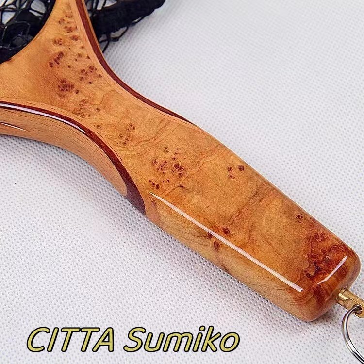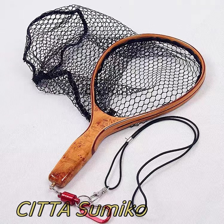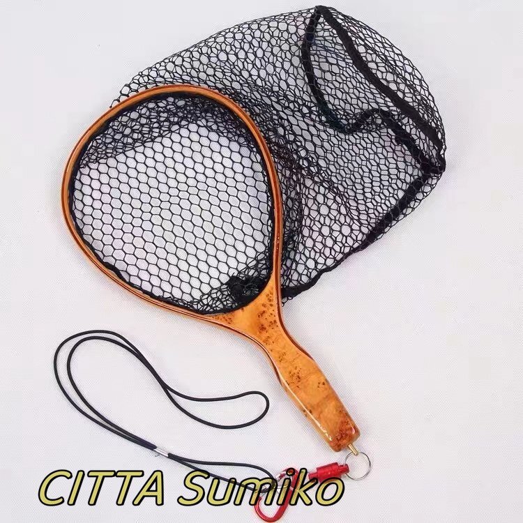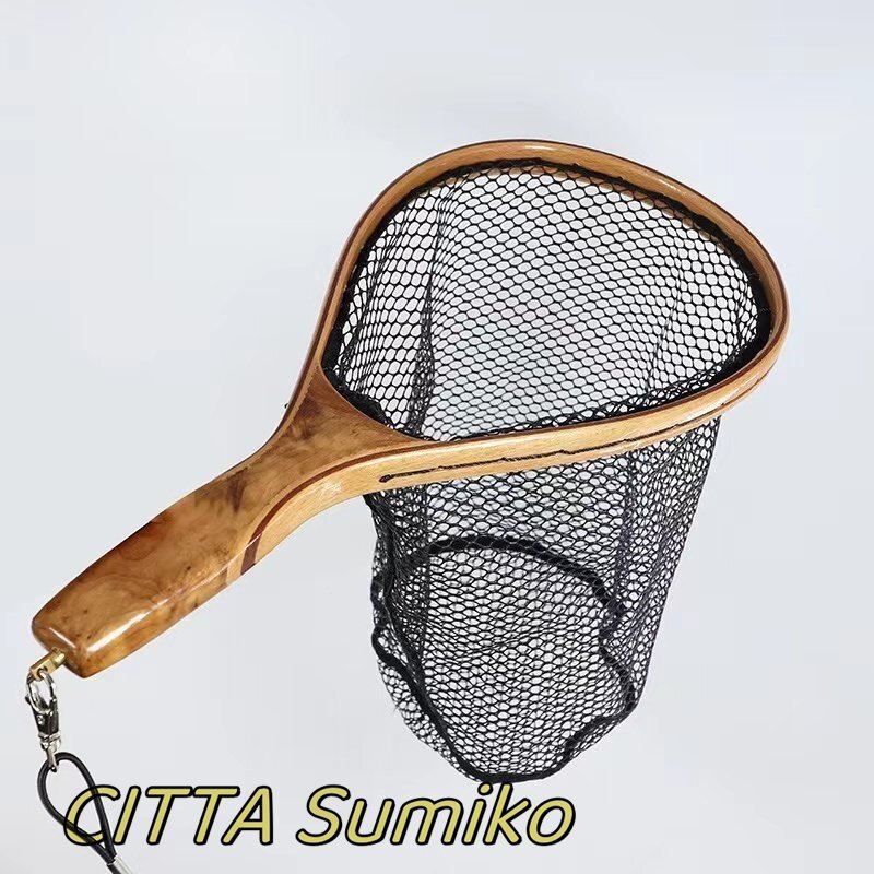 店長特選 渓流用 ランディングネット タモ網 玉網 クランク ハンドル ウッドラバーネット フライフィッシング 木製 持ち運び