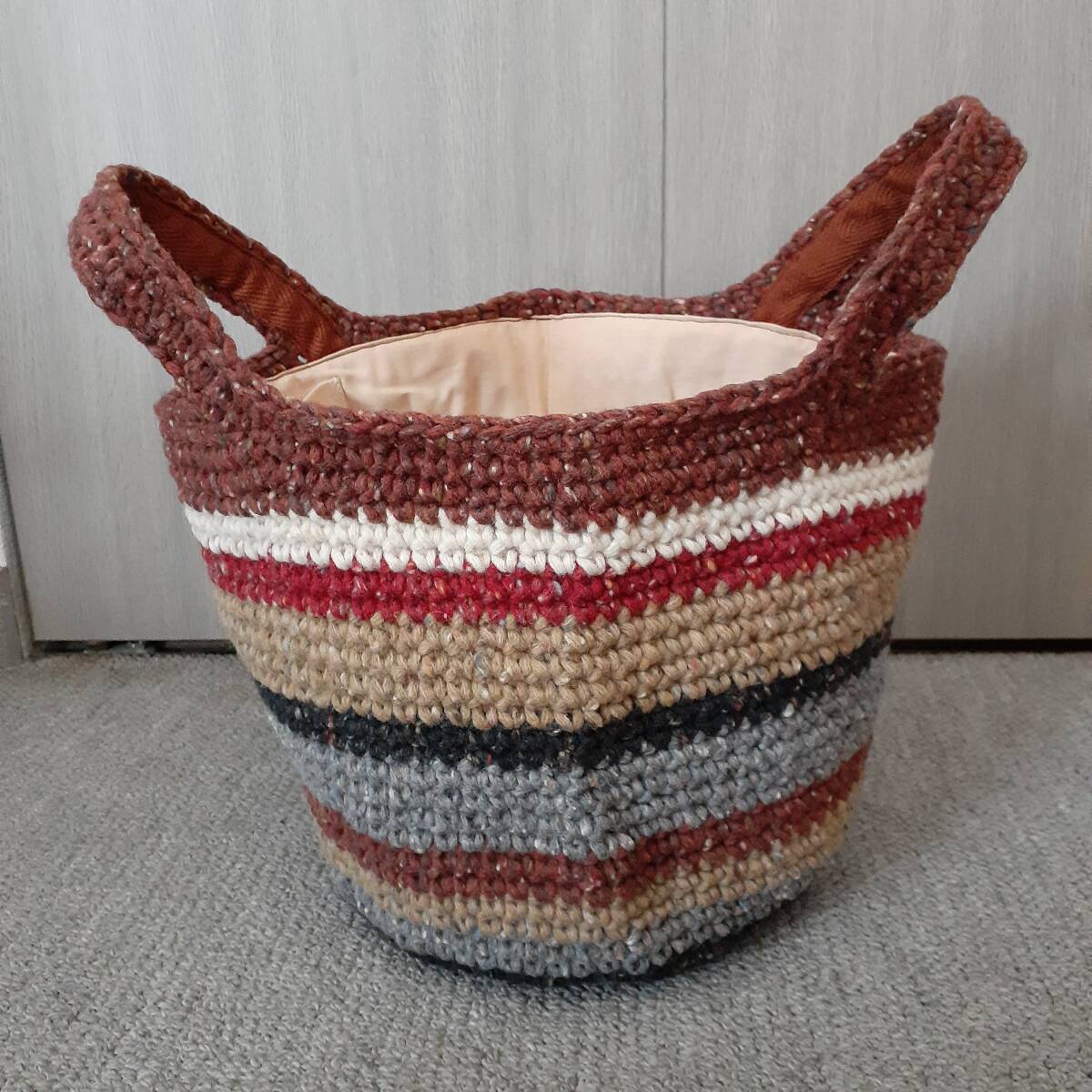 ハンドメイド 手編み トートバッグ 内布付き マルチカラー ツィード ウール
