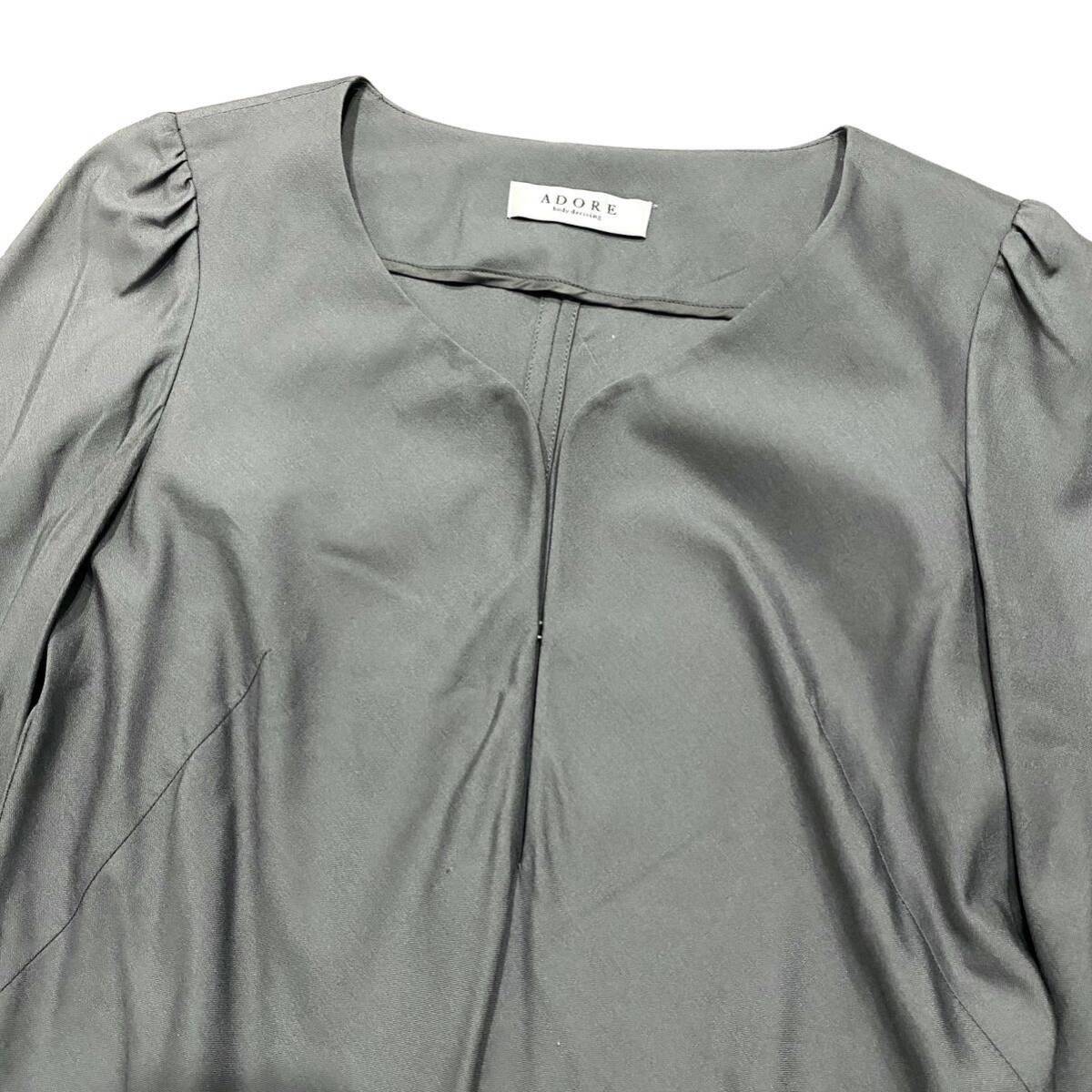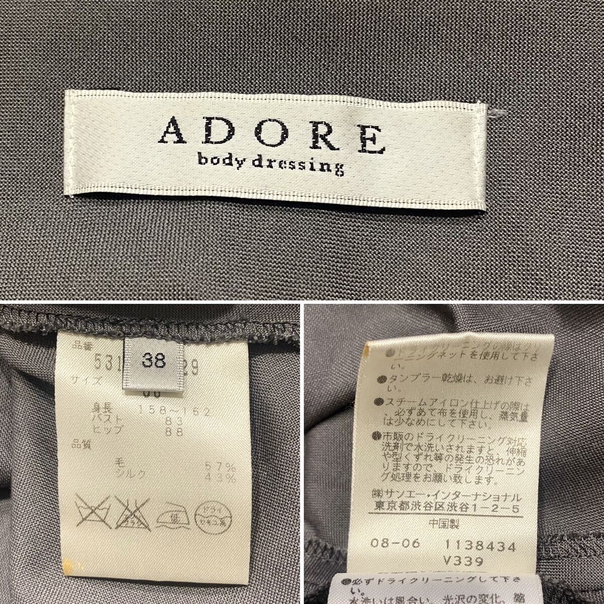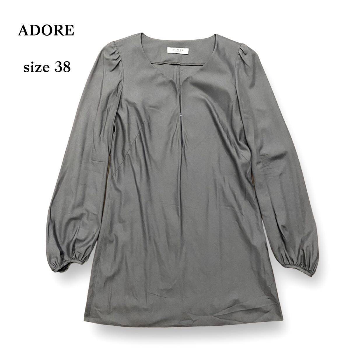 ADORE アドーア 長袖 ノーカラー チュニック ショート ワンピース グレー レディース ウール シルク 混紡 サイズ 38