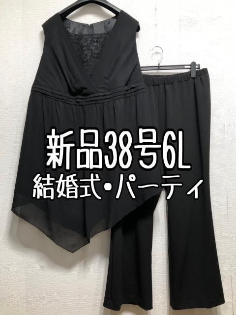 新品☆38号6L♪黒系♪おしゃれパンツドレスセットアップ♪パーティ・結婚式☆r379