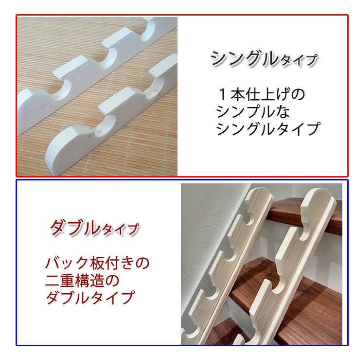 | 商品説明 | ※ご覧いただきありがとうございます。 ご希望、要望などございましたら お気軽にお問合せください。 こちらの商品7本掛【ダブル】ねじ止め【無塗装】仕上げです。 ねじ止めタイプ【ダブル】塗装&フェルト付 5.380円 【受注生産商品】 ☆7本掛け☆ダブル※無塗装 【通常ねじ取付タイプ】 ☆ 今まで車庫や倉庫で片付け難かったロッドを、 少ないスペースで 自分想のディスプレイして収納する事が出来ます。 ☆ シンプルなので、貴方の自慢のロッドを さり気無く引き立てます。 ☆ ルアー用ロッドから磯竿・投げ竿等、 ほとんどのロッドが可能です。 ☆ 壁掛けタイプです。 ☆サイズ詳細 高さ : 約780ミリ×奥行 : 約83ミリ (厚さ19ミリ) 穴径: 約38mm【フェルトオプション】500円 大事なロッドにキズをつけない。 塗装 : 無塗装(磨き仕上げ)塗装オプション500円 材質 : パイン材 この商品は受注生産です。 1つ1つ手作りですので左右対象ではありません。 完璧を求める方はご購入をお控えください。 天然木ですので、木目やフシが一点一点異なり、 キズやフシなどがある場合があり写真と同じ 木目の商品にはなりませんのでご理解のほど お願いいたします。 注文後約4~6日(日曜、祝日を除く)前後で 発送させていただきます。 尚、注文込み具合にて若干お時間いただく場合がありますので その節は釣り気分でワクワクしながら楽しみにお待ちください。 ※ロッドスタンド、ロッドホルダーは ほとんどのロッド磯竿、ジギングルアー竿、 エギング竿、メーカー(ダイワ、シマノ、ほか) ほとんど釣り竿に竿掛け可能です。 釣り竿・ロッド(釣種)...アジングロッド, エギングロッド, シーバスロッド, ジギングロッド, ルアーロッド, ロッドスタンド・竿立て |