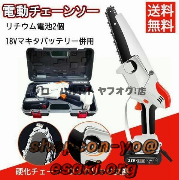 品質保証 電動 充電式 ミニチェンソー 2個バッテリー付き 18Vマキタバッテリー併用 ポータブル 園芸設備 木材切断 枝打ち 伐採 S59