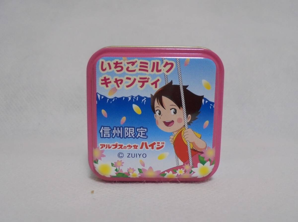 空缶 いちごミルクキャンディ缶 信州限定 アルプスの少女ハイジ ZUIYO 美品 サイズ約6.8×4.7×4.7cmです。