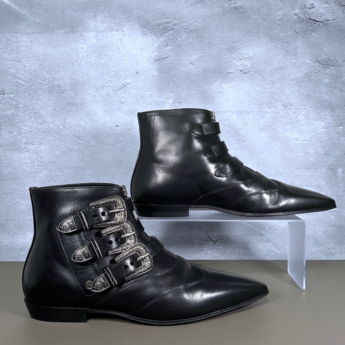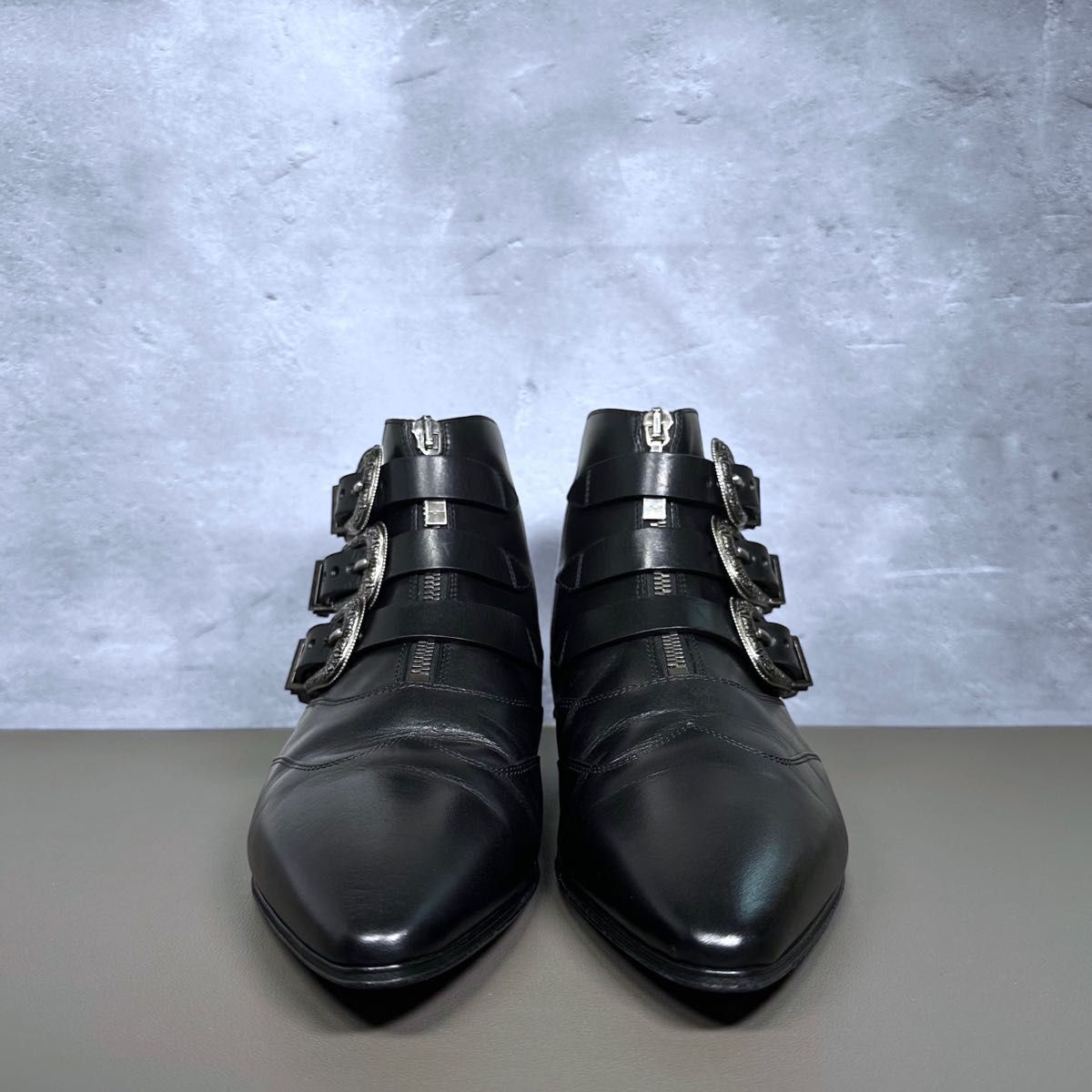 ウィンクル ピッカーズ ブーツ ウエスタン ベルト バックル メタル レザー センタージップ