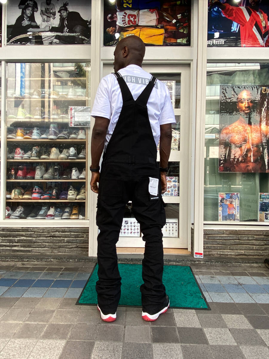 USA正規品 【M】 NY発 SmokeRise スモークライズ Stacked スタックド フレアデニム オーバーオール ストレッチデニム 色落ち JET BLACK 黒