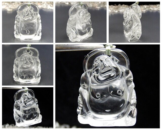 天然石AA+水晶布袋様模様佛手彫りペンダントトップ紐ネックレス出入平安プライム