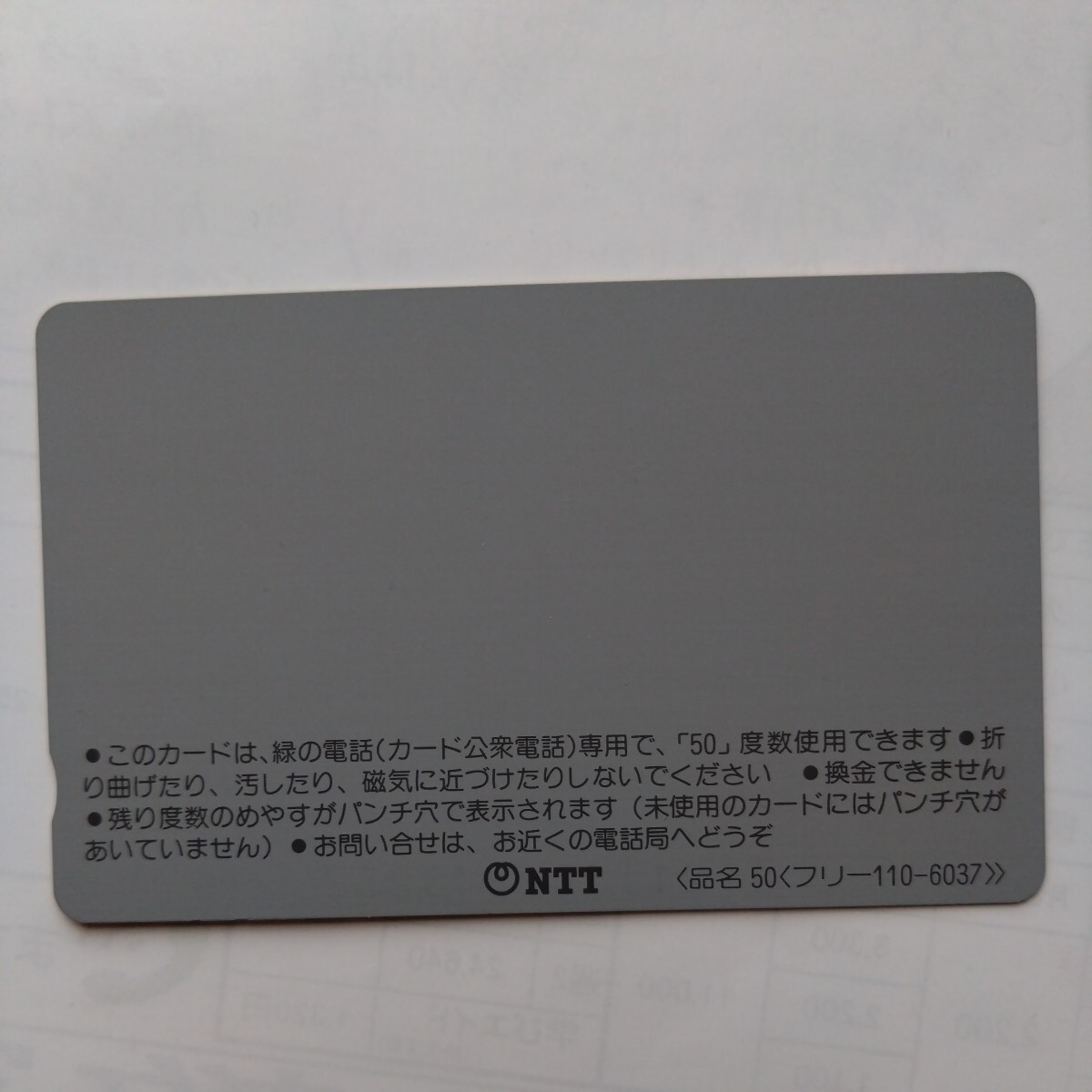 テレホンカード 未使用 50度数です。状態良好ですが、光にかざすとごく少しわかる程度の薄い傷が見られます。