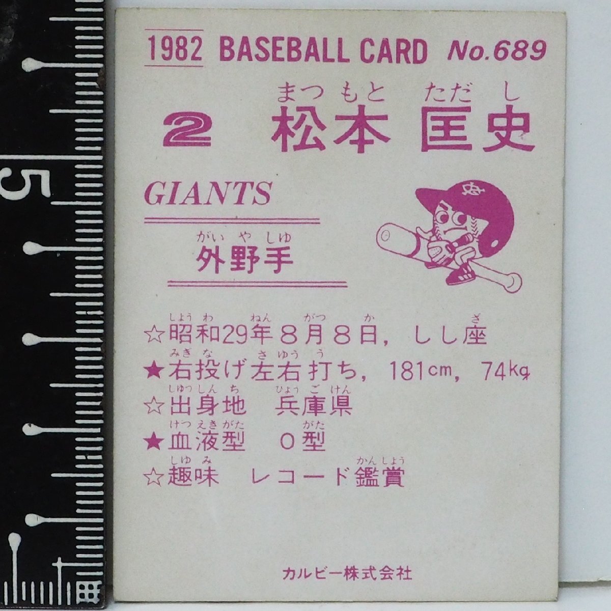 82年 カルビー プロ野球カード No.689【松本 匡史 外野手 読売ジャイアンツ 巨人】昭和57年 1982年 Calbee おまけ 食玩 BASEBALL【中古】