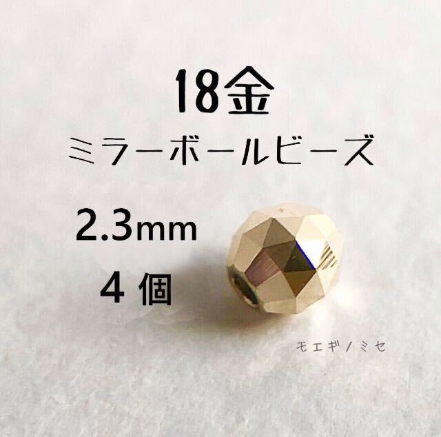 18金 ビーズ 2.3mm 4個セット k18 日本製 アクセサリーパーツ トライアングルカット 18k ミラーボールカット ハンドメイド素材 18金無垢