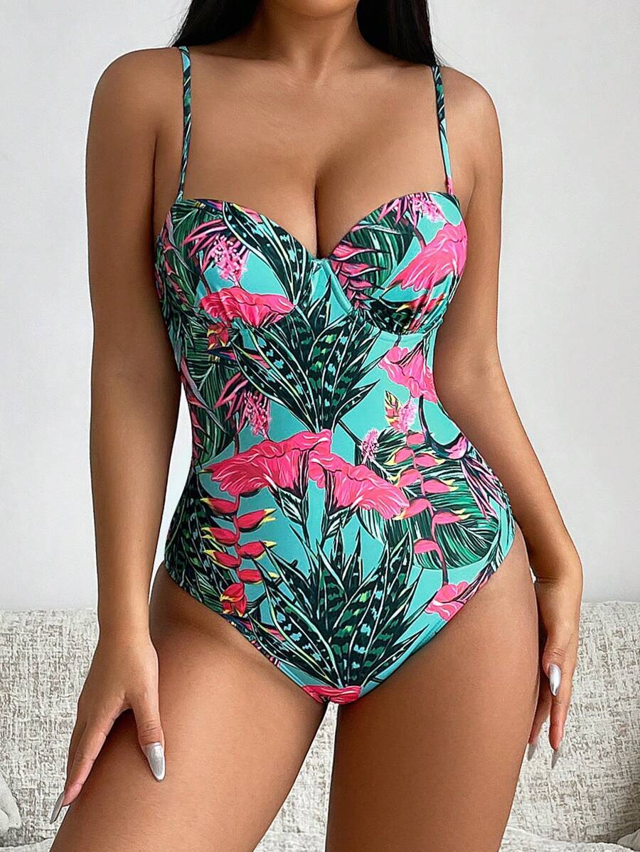 レディース 水着 ワンピース ハイネック水着 ワンピース型 トロピカル柄
