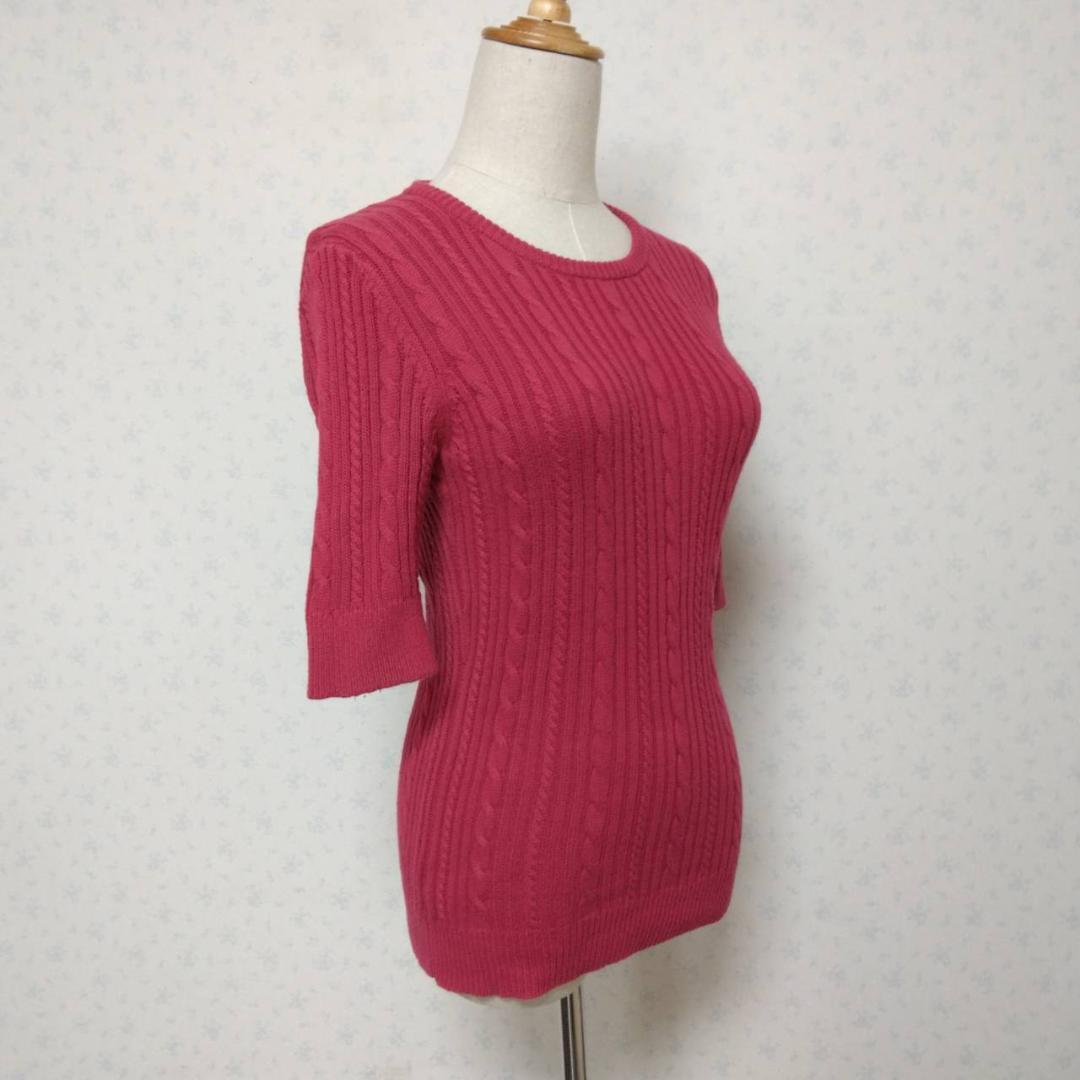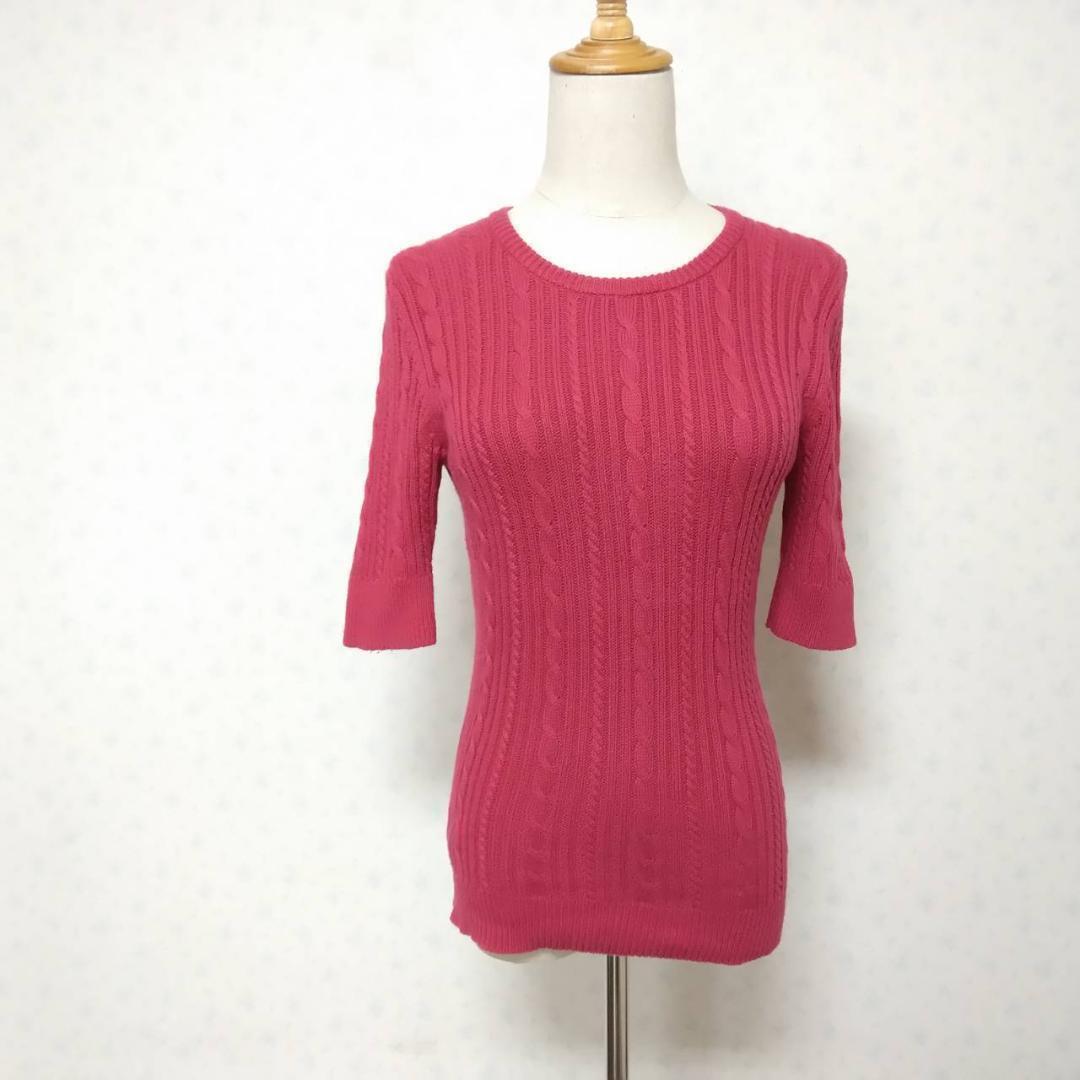 ボディラインを綺麗にみせてくれる「ANN TAYLOR」の半袖ニットです! コットン100%の優しく涼やかな肌触りで、さらりとしたコンパクトな着用感です(*^^*) ロングシーズン着用でき活躍するアイテムです