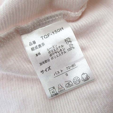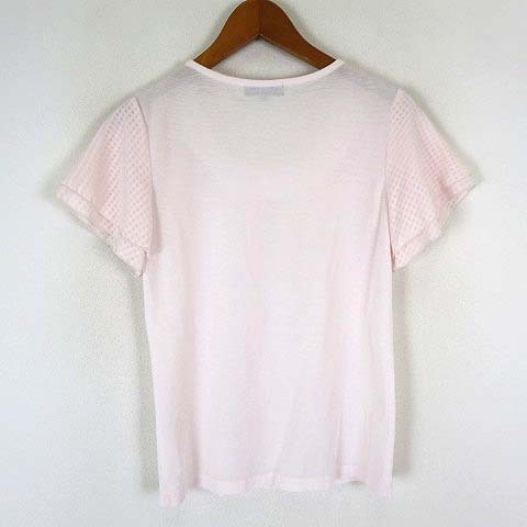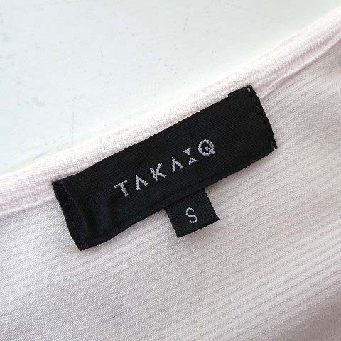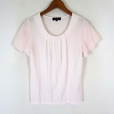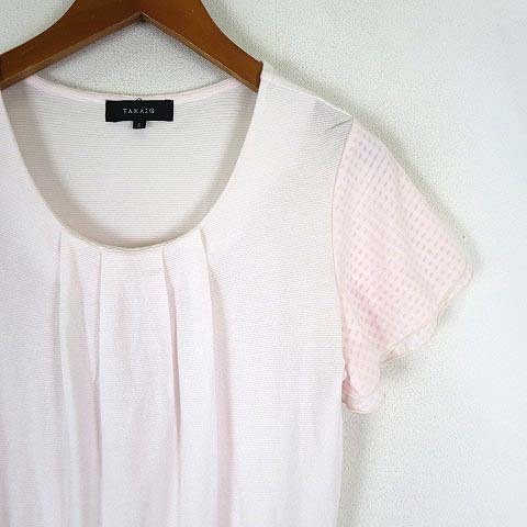 タカQ タカキュー TAKA-Q カットソー ブラウス ラメ タック シアー シフォン チェック 半袖 S ライトピンク レディース