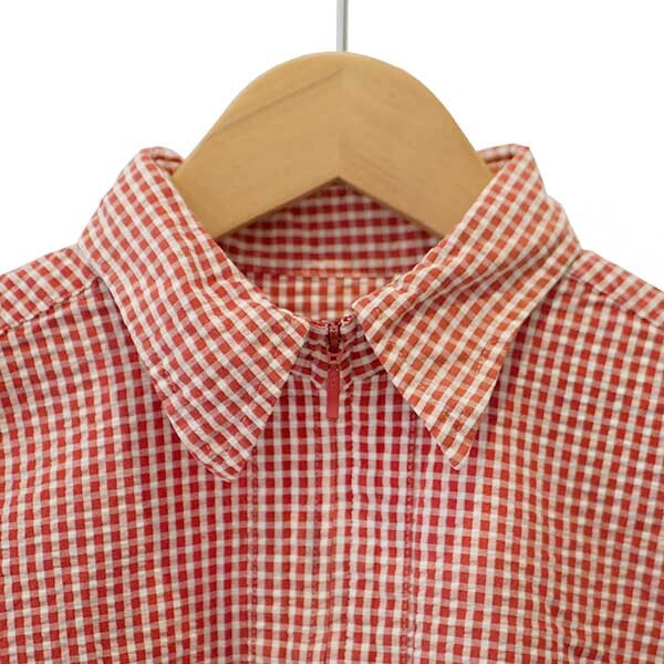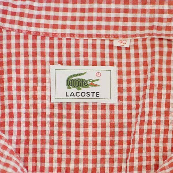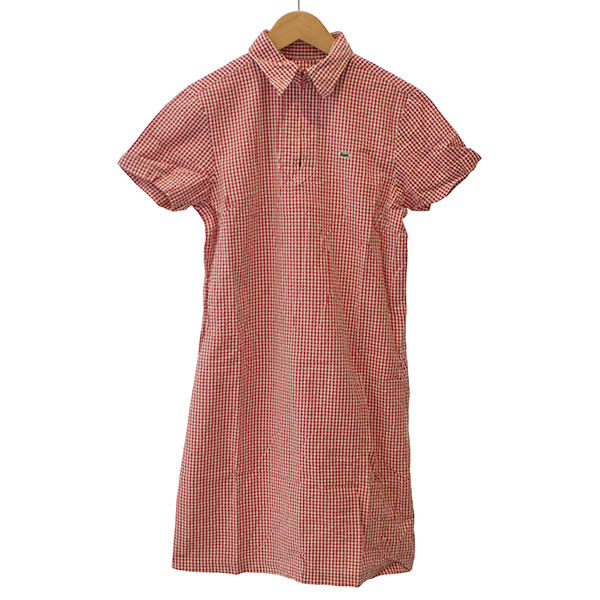 ラコステ LACOSTE ワンピース 半袖 スタンダードカラー 40 ギンガム チェック柄 レッド 赤 /AG レディース