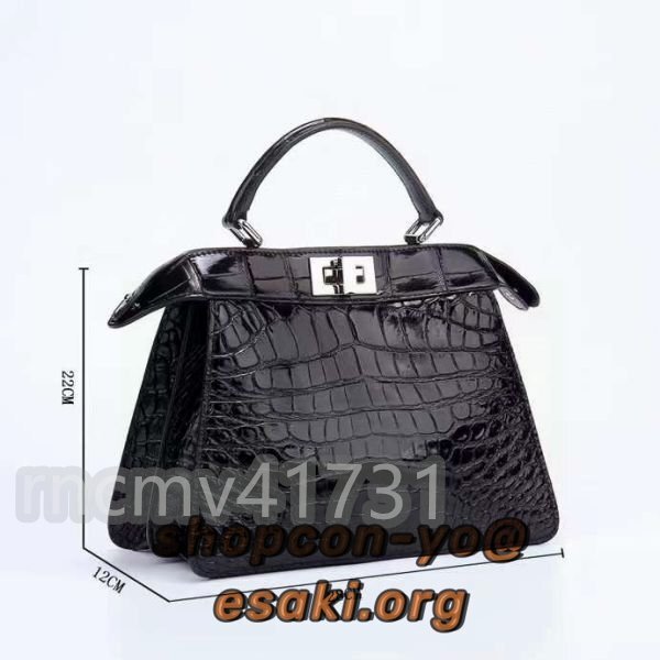 クロコダイル本革 腹部革使用 センター取り ワニ革 レディースバッグ ハンドバッグ 2WAY 手提げ ショルダーバッグ レザーバッグ