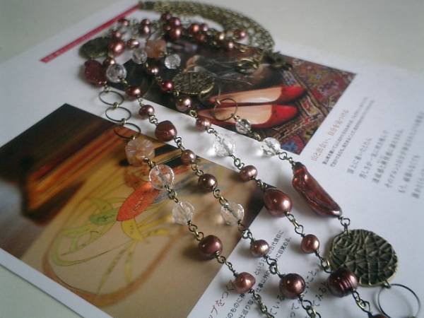 ビター・スィート・・シリーズです♪深い赤のパール・・シックな深い赤の淡水パールのネックレス2点セットです♪重ねてネックレスに1本をブレスレットにと色々な組み合わせで楽しんでいただけます♪ポテトやバロックや芥子などデザイン違いの淡水パールに水晶やデザインメタルを合わせて大人のロマンチックしています♪6ミリから13ミリ位までのポテトやバロックの淡水パールには8ミリ、10ミリの水晶のランダムカットを合わせました♪長さは全長96センチ位で調節自由です♪2連にされても素敵です♪6ミリから11ミリのポテトの淡水パールには12×28ミリ位の芥子パールや8ミリ、10ミリのランダムカットの水晶やモスコバイトの薔薇やデザインコインを合わせました♪長さは全長100センチ位で調節自由です♪2連にされても素敵です♪それぞれ単品やお揃いのブレスレットやイヤリングも出品しています♪シンプルで飽きのこないいつまでも着けられるデザインを考えて作りました!ハンドメイドをご理解頂いてノークレーム、ノーリターンでお願いします