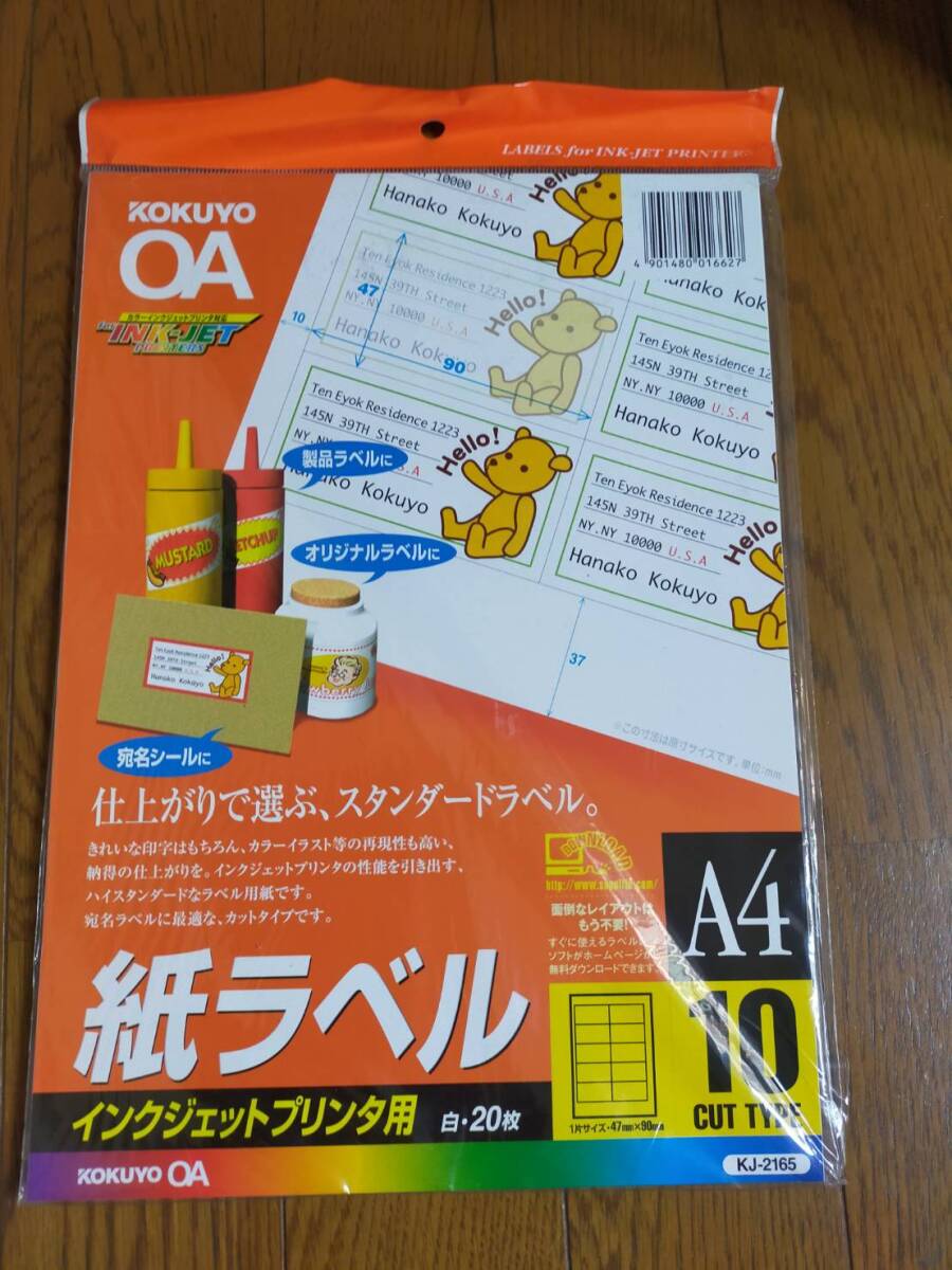 ★A4 コクヨ 紙ラベル(10面×20枚) 47×90mm KJ-2165 送料185円