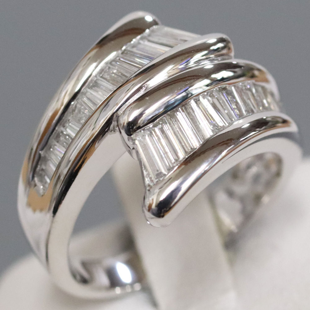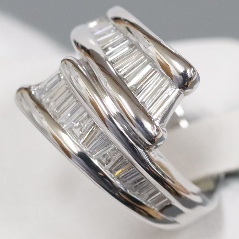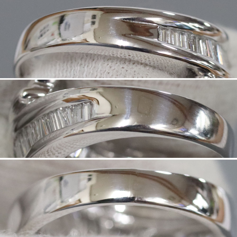 K18WGテーパーダイヤモンドリングの中古品です。 敷き詰められたテーパーダイヤモンドがゴージャスです。 ダイヤモンドは、インクルージョンはありますが、輝きがあります。 地金に小傷、底部にサイズ直しの跡が目立ち、触ると凹凸があります。