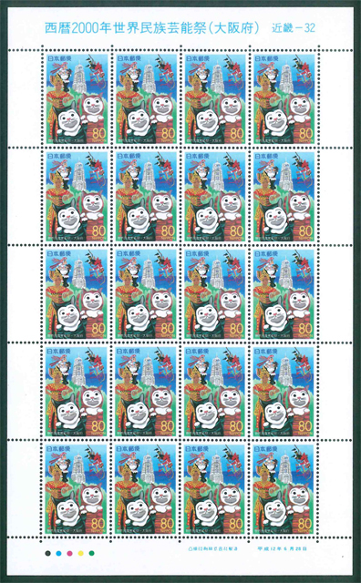 ふるさと切手 西暦2000年世界民族芸能祭(大阪府) 近畿-32 記念切手 80円切手×20枚