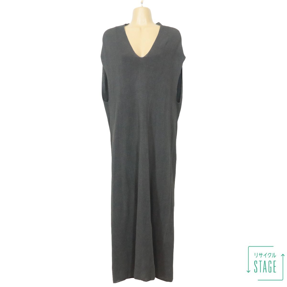 ナノユニバース★ノースリーブワンピース 長袖 サイズ36 インナーキャミ付き♪薄手 春夏 グレー系 z7569