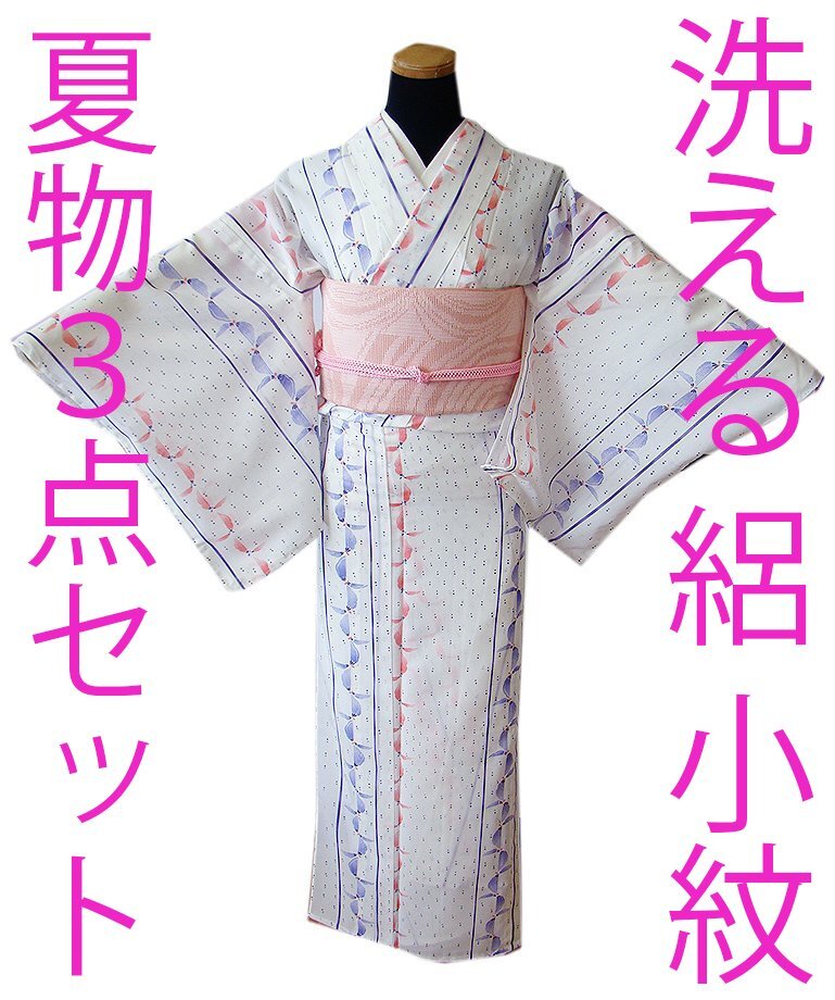 ★超大特価◆夏物!洗える高級ポリエステル! 「絽」のお洒落な小紋&なごや帯&正絹の帯〆3点セット I584★ | |