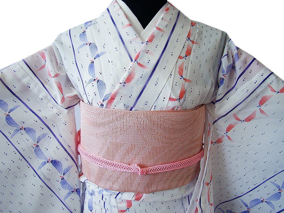 | 商品説明 | こちらのお品は夏物でございますので、7月~8月にお召頂ければと思います。 「絽」と言えば、紗と双璧を成す夏のお着物の生地で、 その最大の魅力は絶妙の透かし加減でございます。 清涼感溢れる地の風を通すしなやかさは夏に着物を着るという贅沢を 快適に愉しませてくれる事でしょう。 着物には、大きく分けて「袷(あわせ)の着物」と「単衣(ひとえ)の着物」と「夏着物」があります。 反物(表地)を着物に仕立てるときに、裏地類をつけるものを袷の着物、 つけないものを単衣の着物と呼び、胴裏や八掛といった裏地がつかない一枚ものの着物です。 また裏地がないため、座る時などにヒップのラインが目立たないよう、 居敷当て(いしきあて)の生地をつけることもあります。 居敷当ては付いておりません。 しなやかな手触りの滑らかなさらっとした肌触りは絹と間違ってしまいそうな 洗える高級ポリエステルの「絽」の生地で涼やかな風合いを醸しております。 白色地に紫、青藤、甚三紅色の染柄がお洒落な着物姿を演出しております。 帯はポリエステルの八寸かがりなごや帯(六通柄)で扱い易く〆易く、 紅梅色地になると柄の織柄が粋な帯姿を奏でております。 帯〆は平組、ピンク色地の組紐となっております。 |