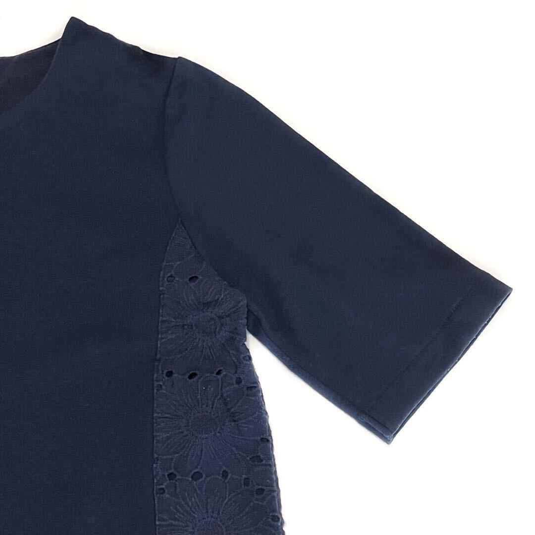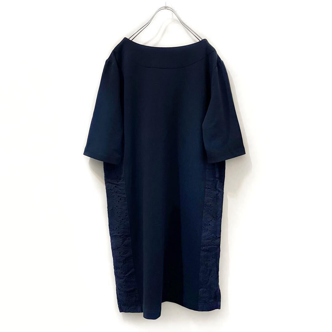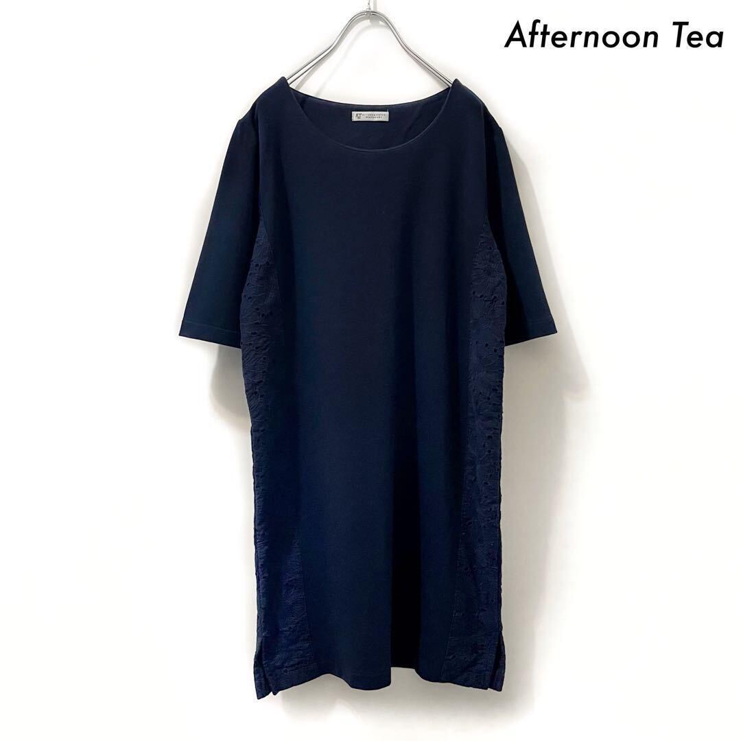 Afternoon Tea アフタヌーンティー★サイドレース切替 半袖ワンピース ネイビー 紺