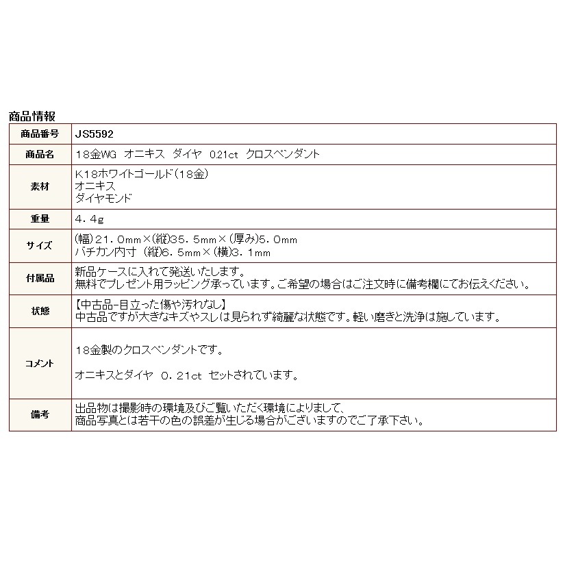 | 商品名 | 18金WG ダイヤ 1.13ct クロスペンダント |